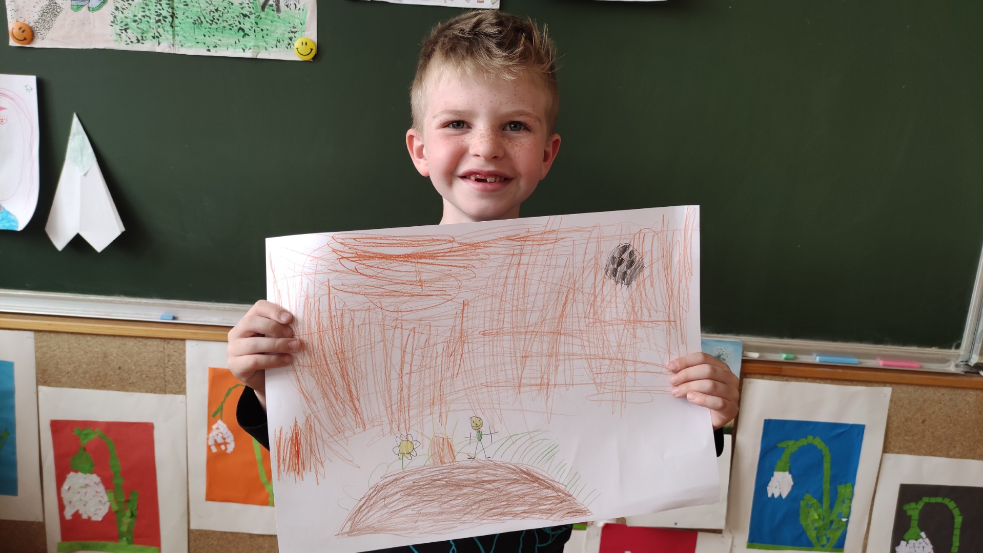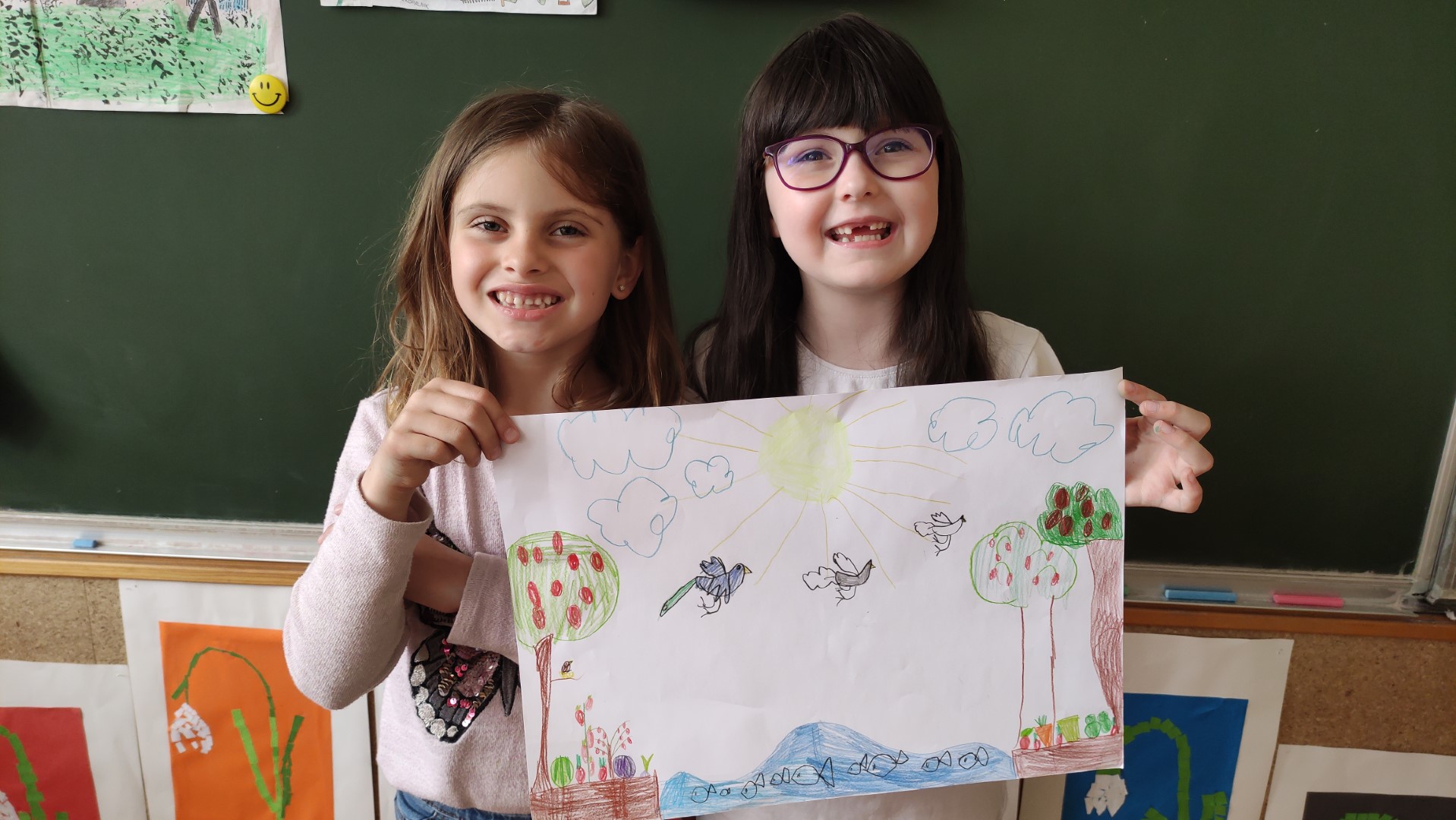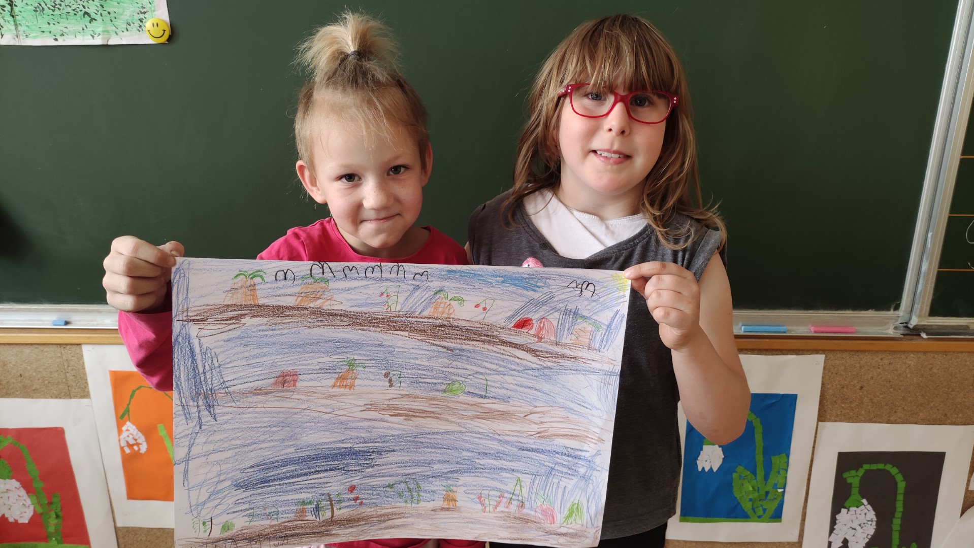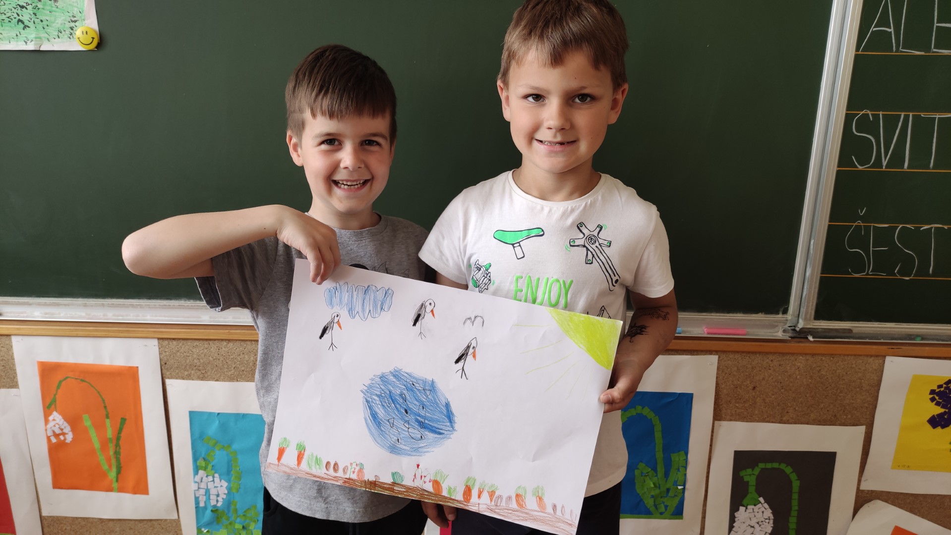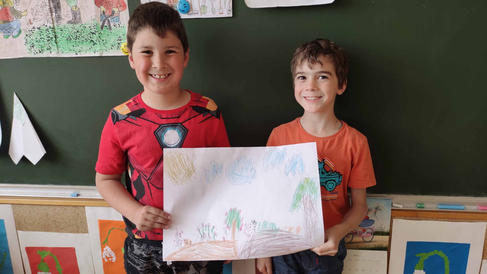 V podaljšanem bivanju 1. a in 1. b smo malce vrtnarili v parih. Na listih so nastali naši vrtovi. Kako zdravo bomo jedli!