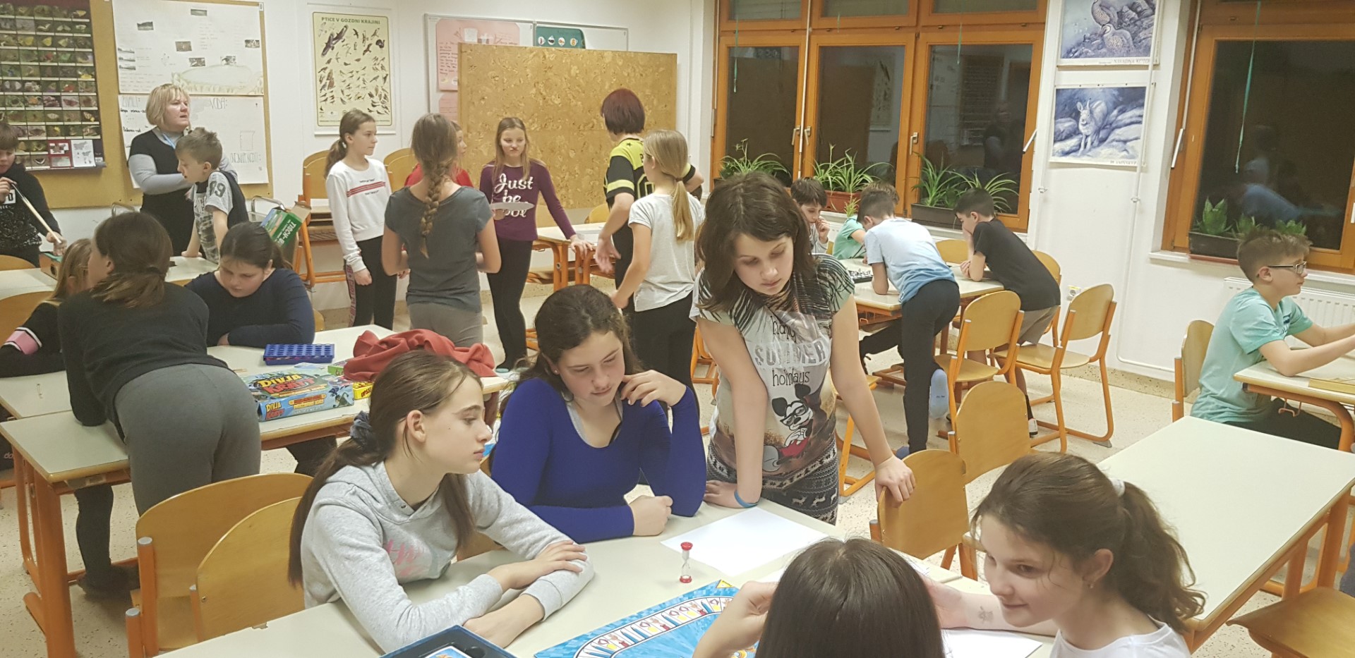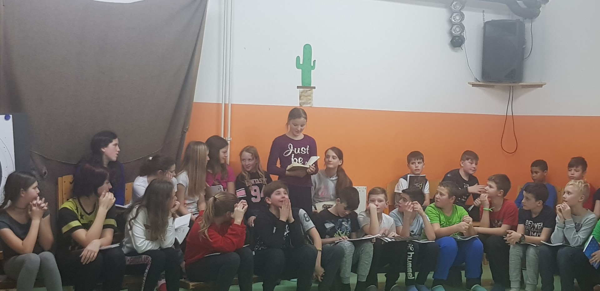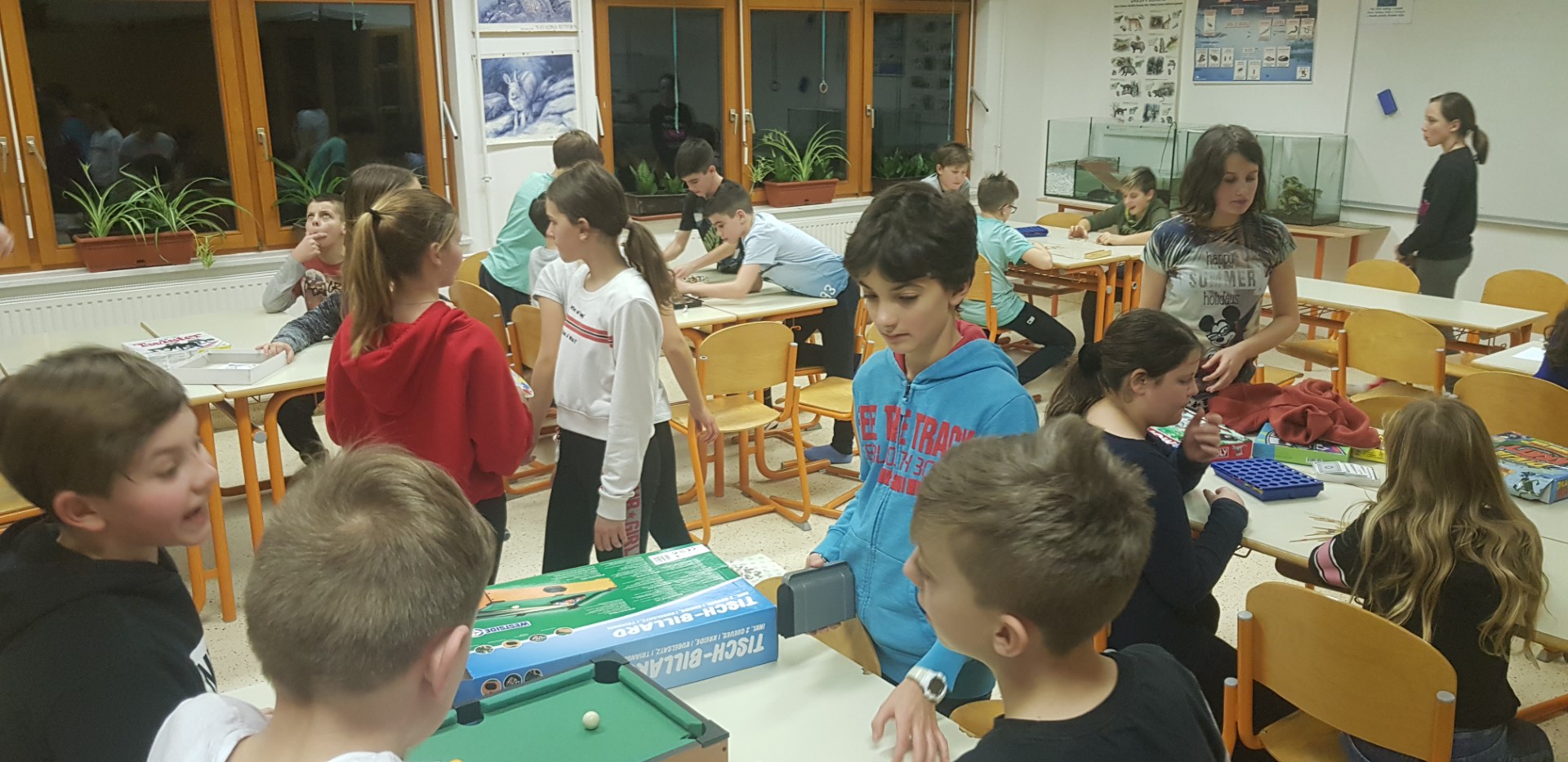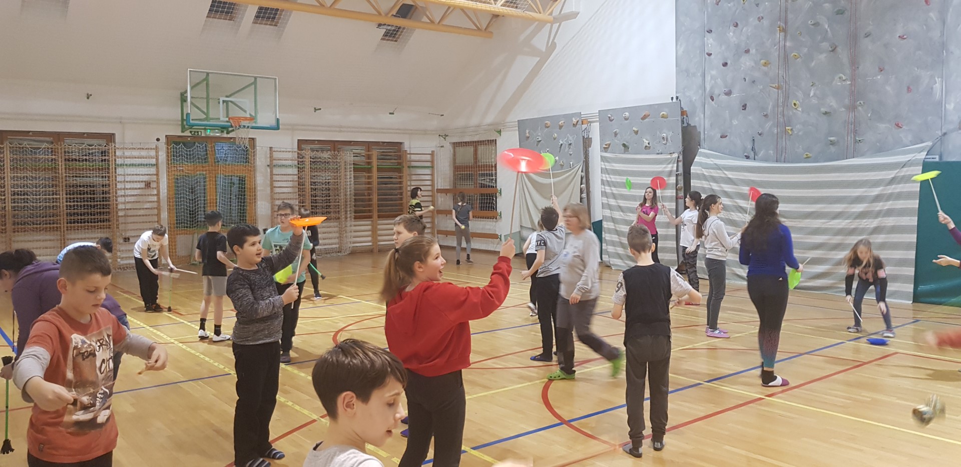 Sreda je bila pestra. Smučanju, ki nam gre že odlično, smo popoldan dodali še športne igre v telovadnici in obvezno branje dnevnika. Ob koncu dneva smo se poizkusili še v cirkuških vragolijah in družabnih igrah.