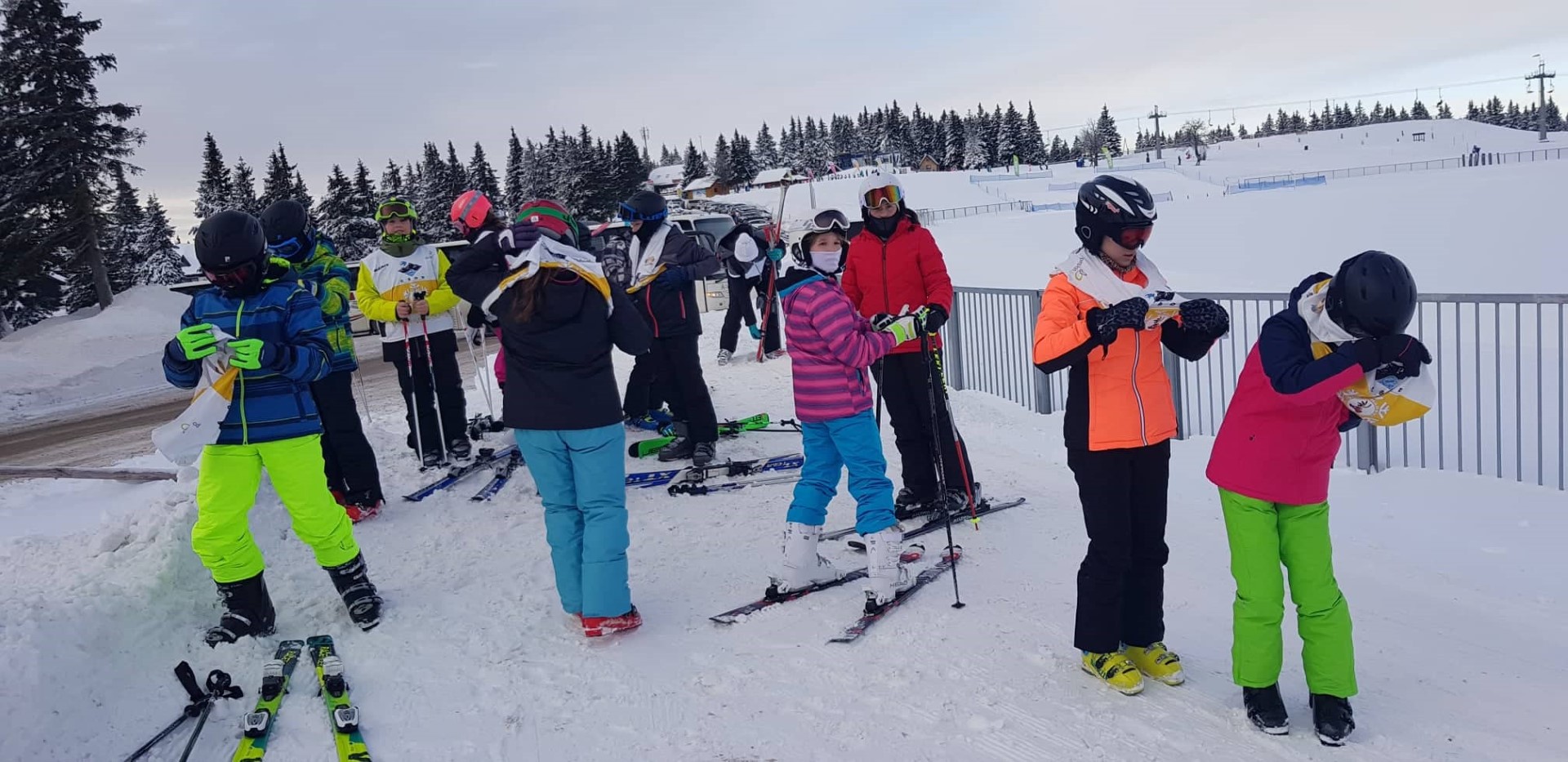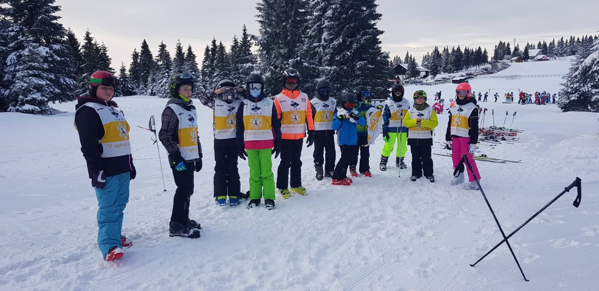 Naši veseli tekači so z energijo in veseljem usvajlali prve tekaške veščine. Med zasneženimi smrekami so pridobili nove izkušnje na odličnih smučinah.