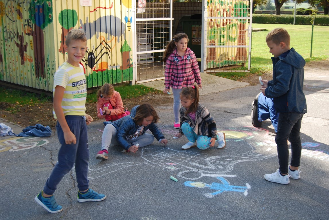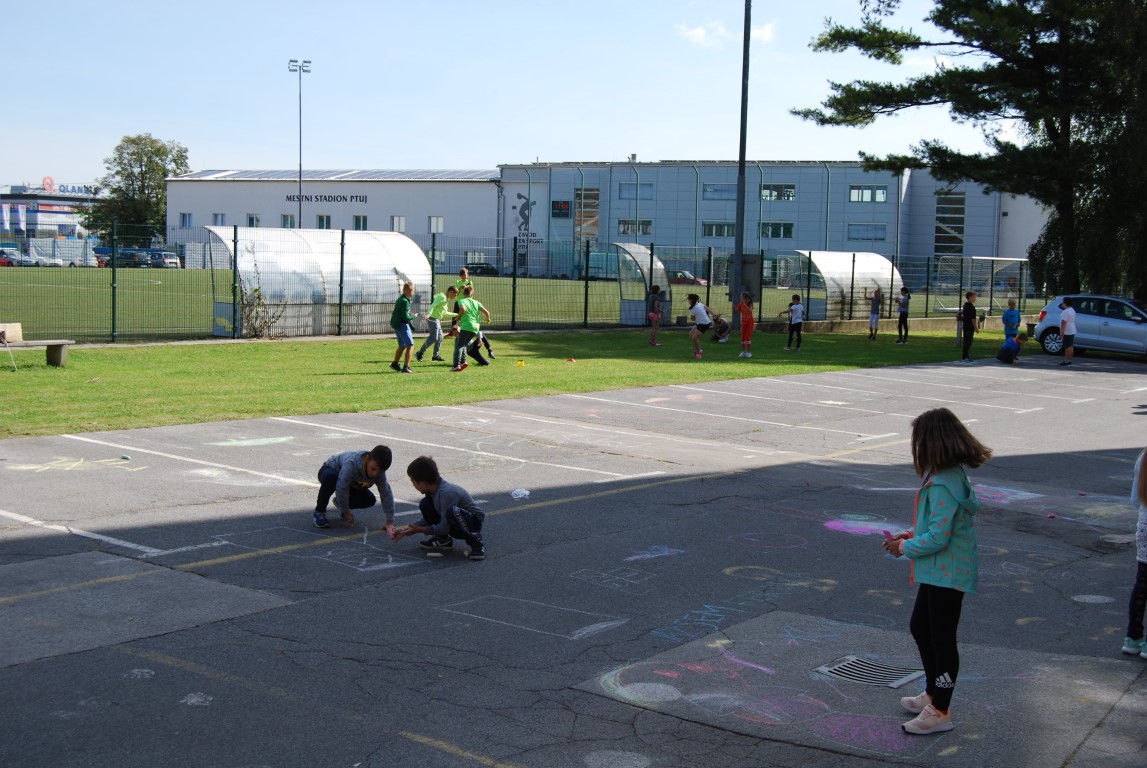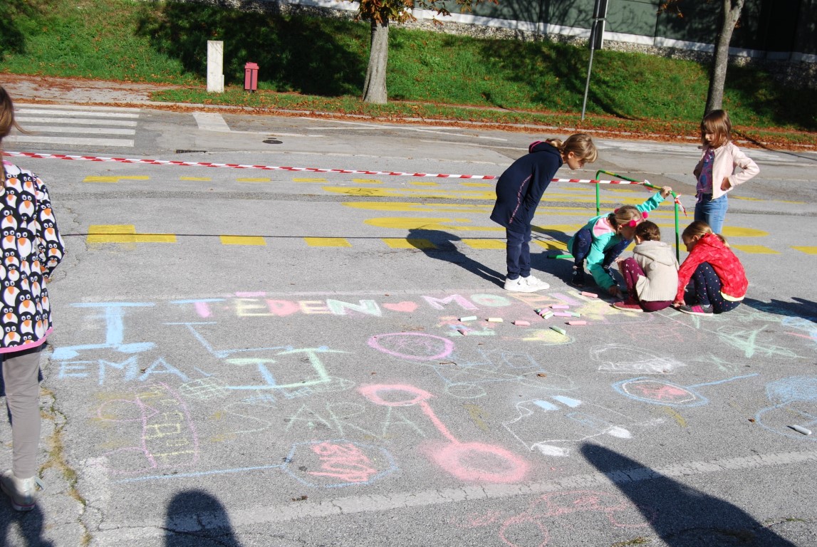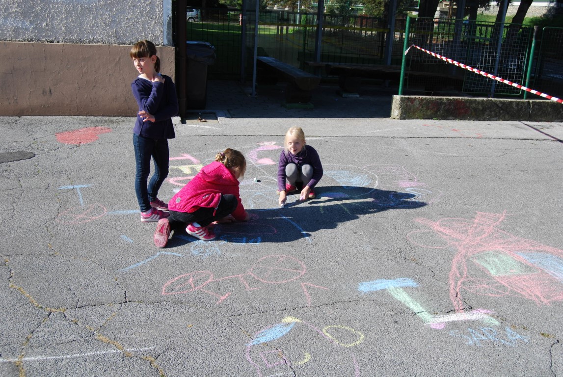 Ulice otrokom. Šolsko parkirišče smo spremenili v likovno delavnico in igrišče.