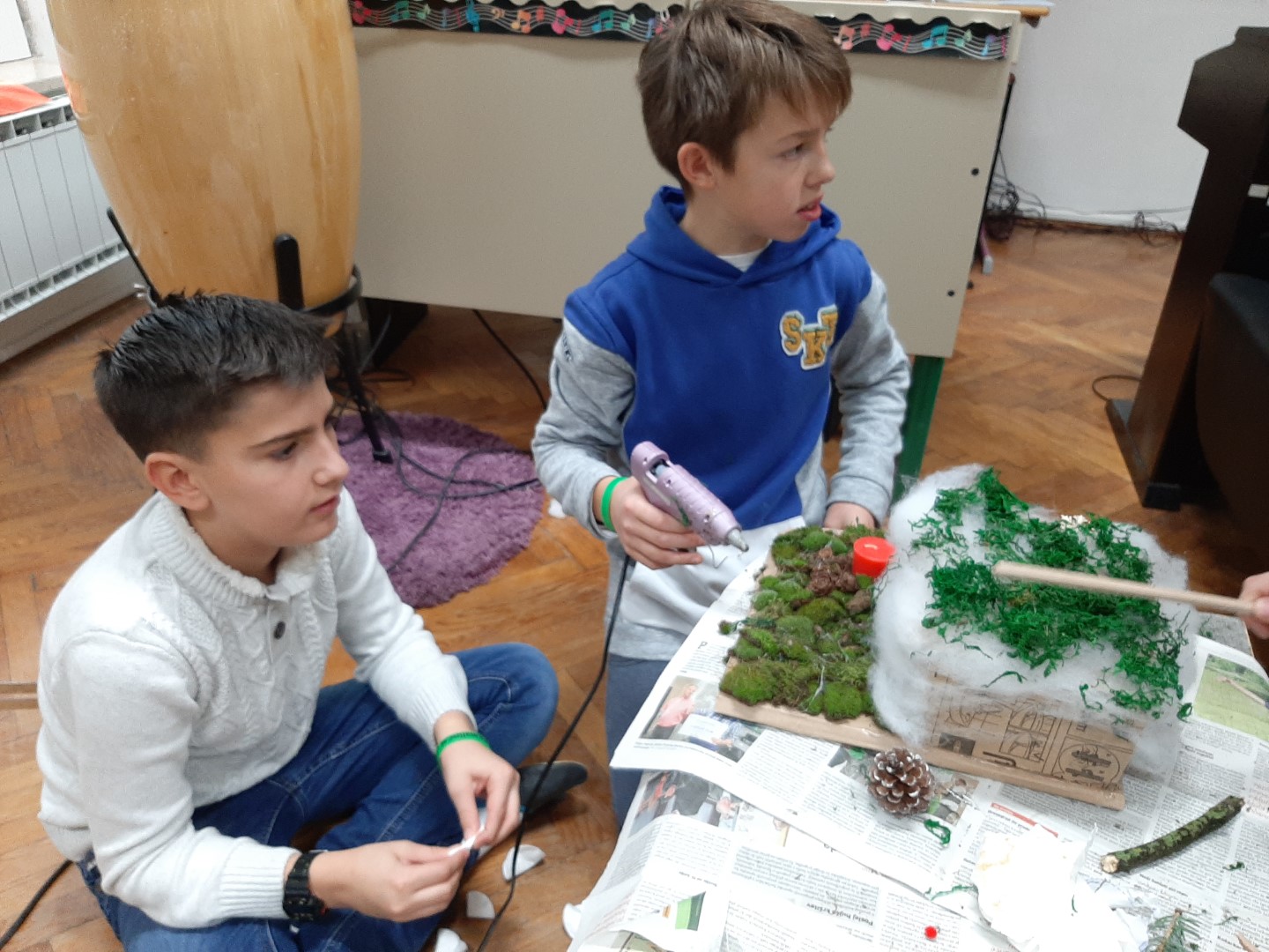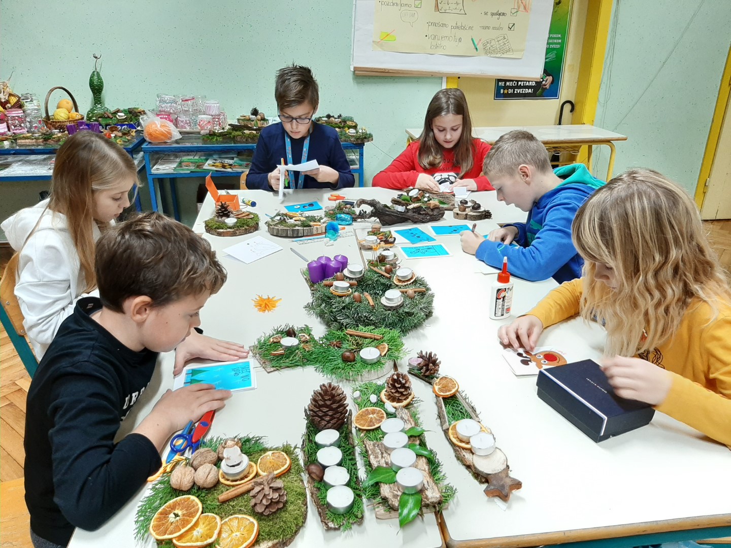 Letošnji tehniški dan je božično-novoletno obarvan. Učenci so pridno ustvarjali izdelke, ki bodo na ogled na novoletnem bazarju.