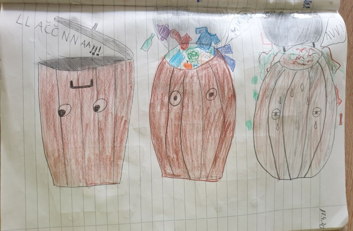 Mešani odpadki: “ Vidva imata srečo, da ljudje ločujejo odpadke, vame mečejo vse živo. Počutim se tako umazanega in zmedenega”.