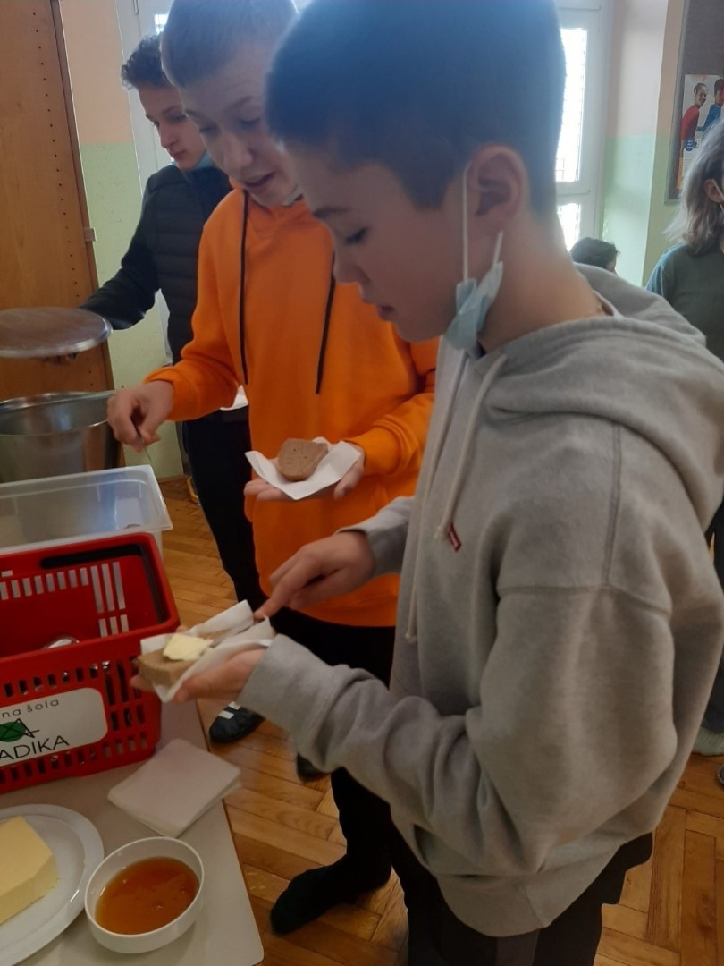 V petek, 19.11.2021, je na naši šoli potekal slovenski tradicionalni zajtrk. Otrokom smo ponudili sveže slovenske izdelke kot so: domači kruh, maslo, med, mleko in jabolka.