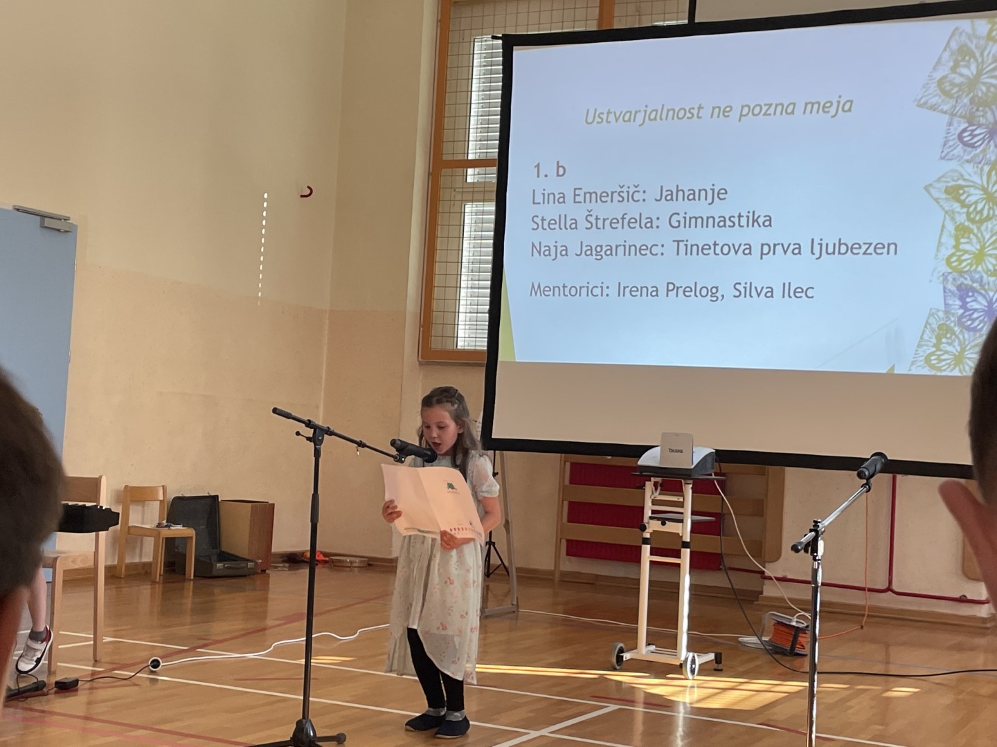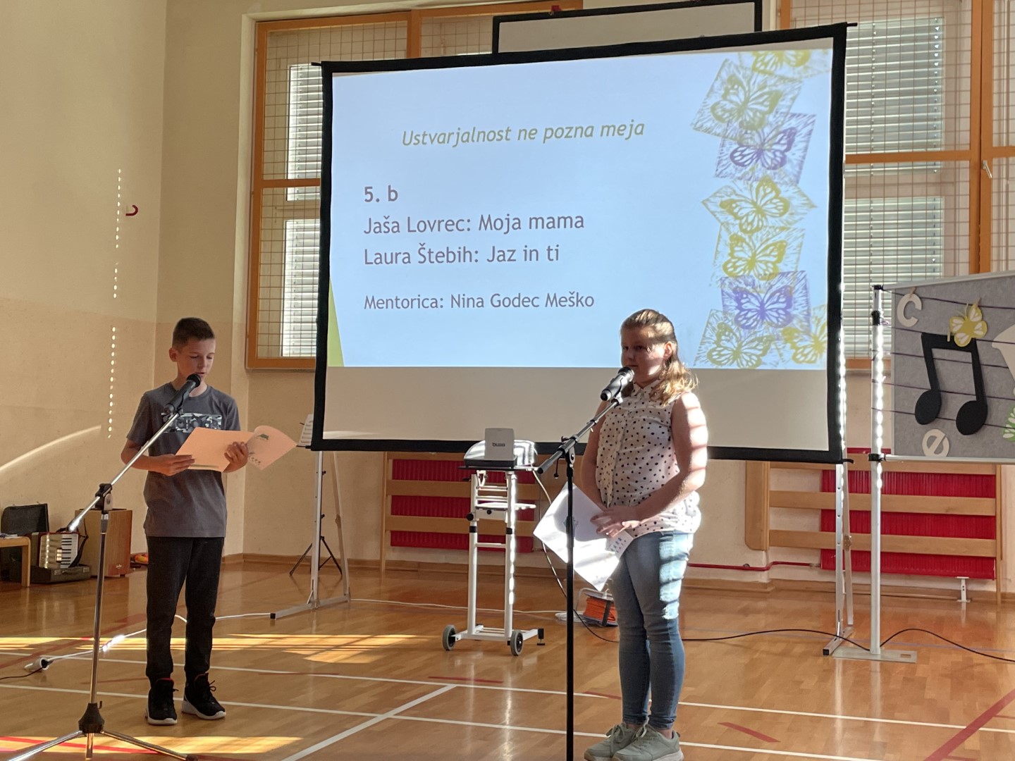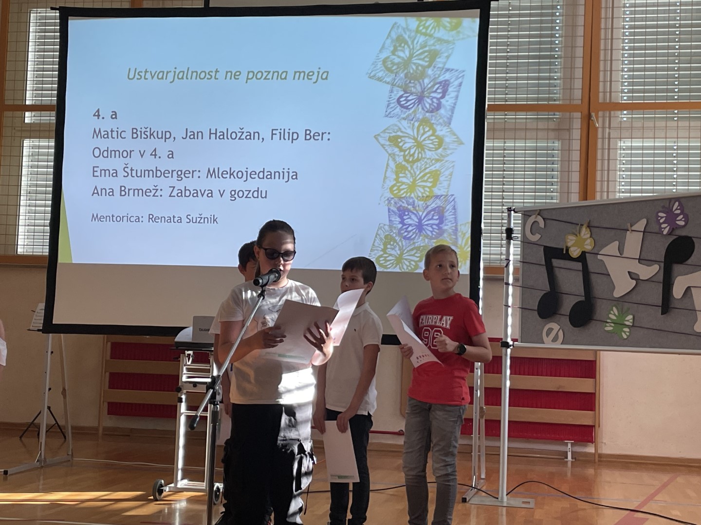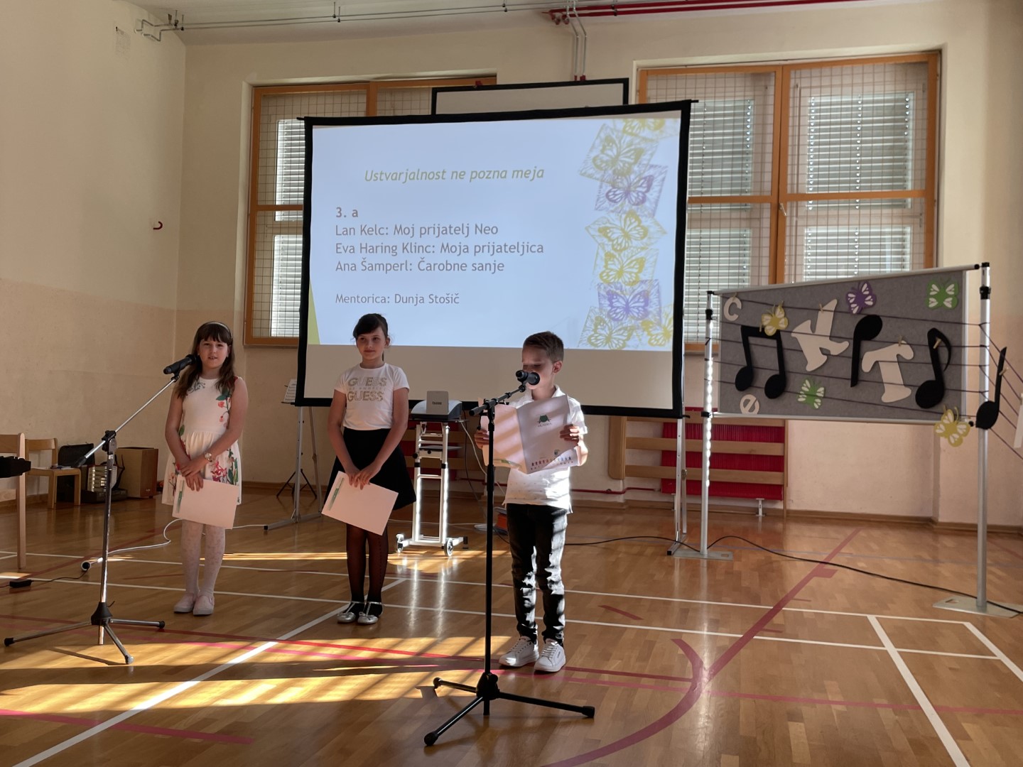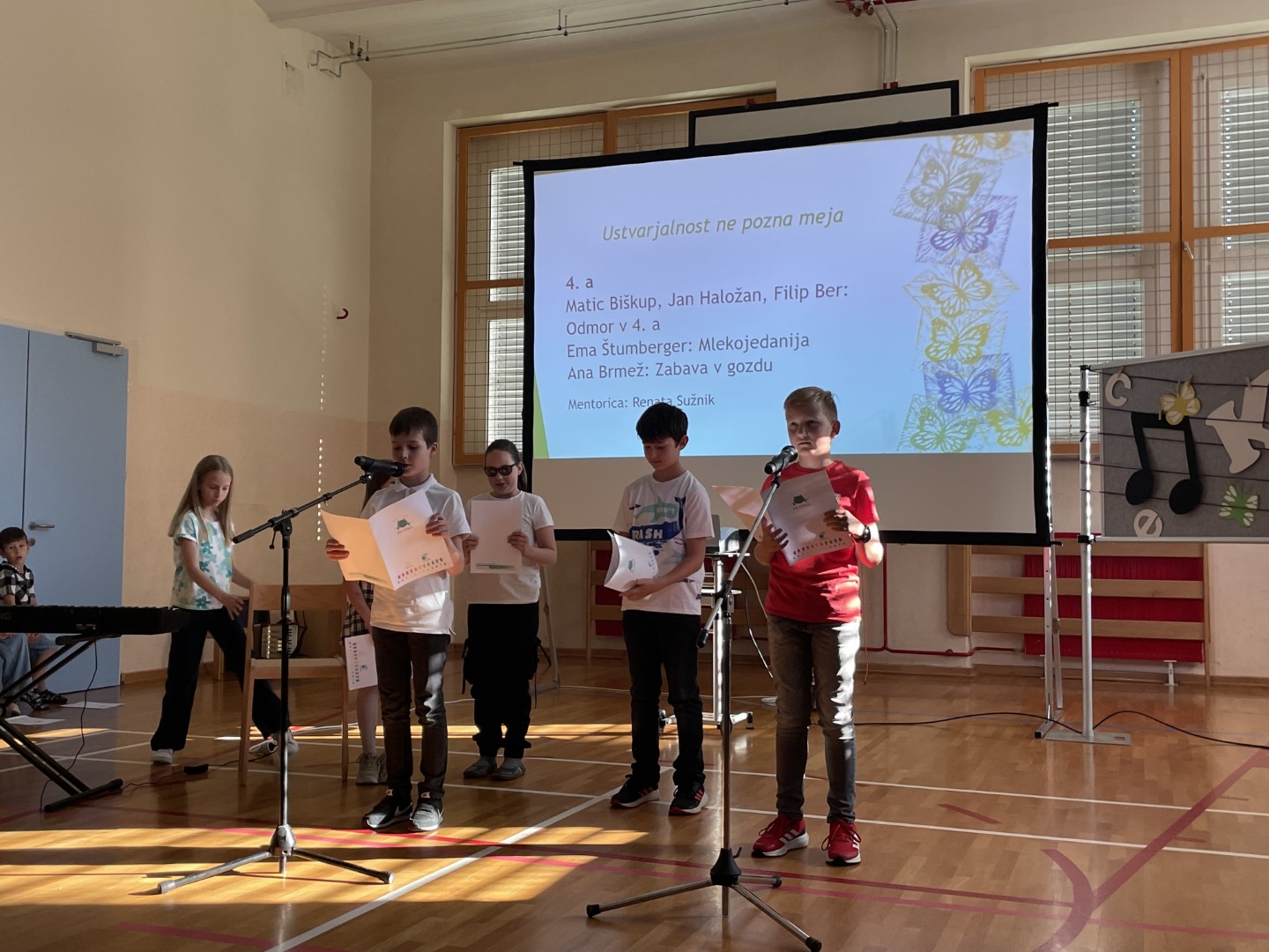 V četrtek, 1. junija 2023, so naši učenci na literarno-glasbenem večeru Ustvarjalnost ne pozna meja predstavili svoje pesmi, zgodbe in razmišljanja. Nekateri so se izrazili skozi glasbo in nam zapeli, zaigrali ter zaplesali.