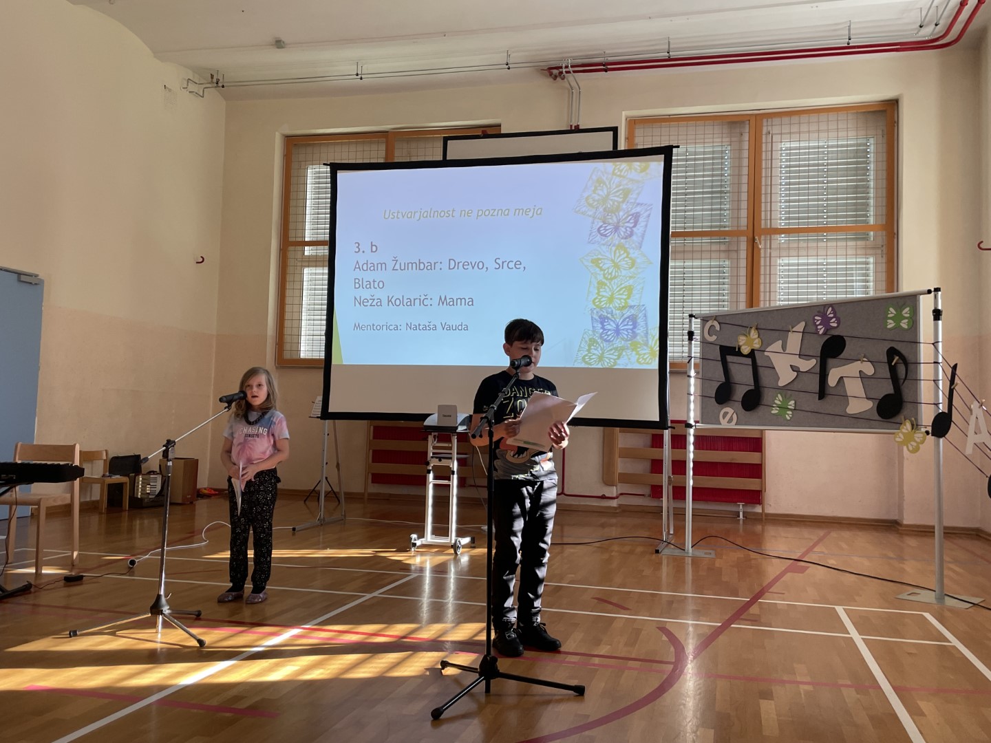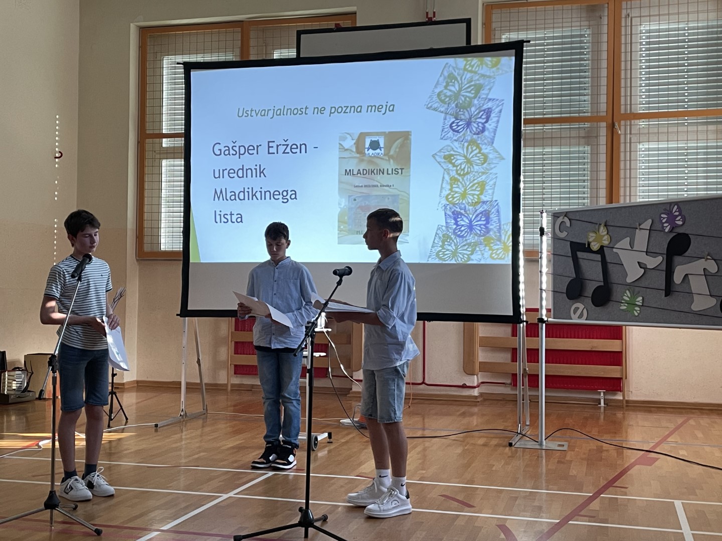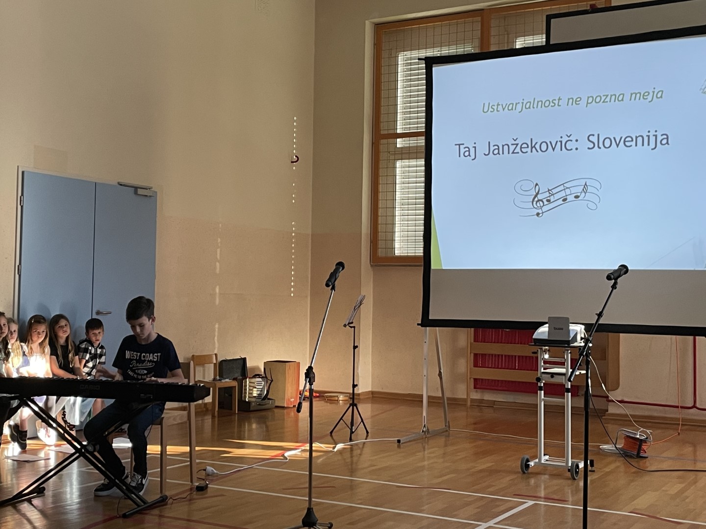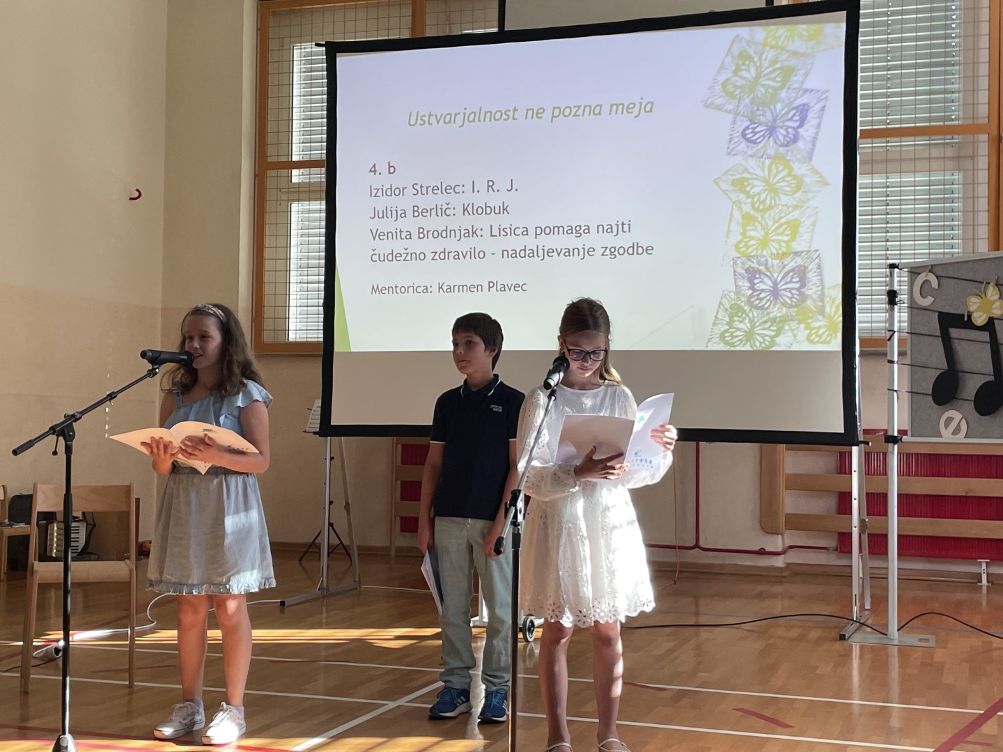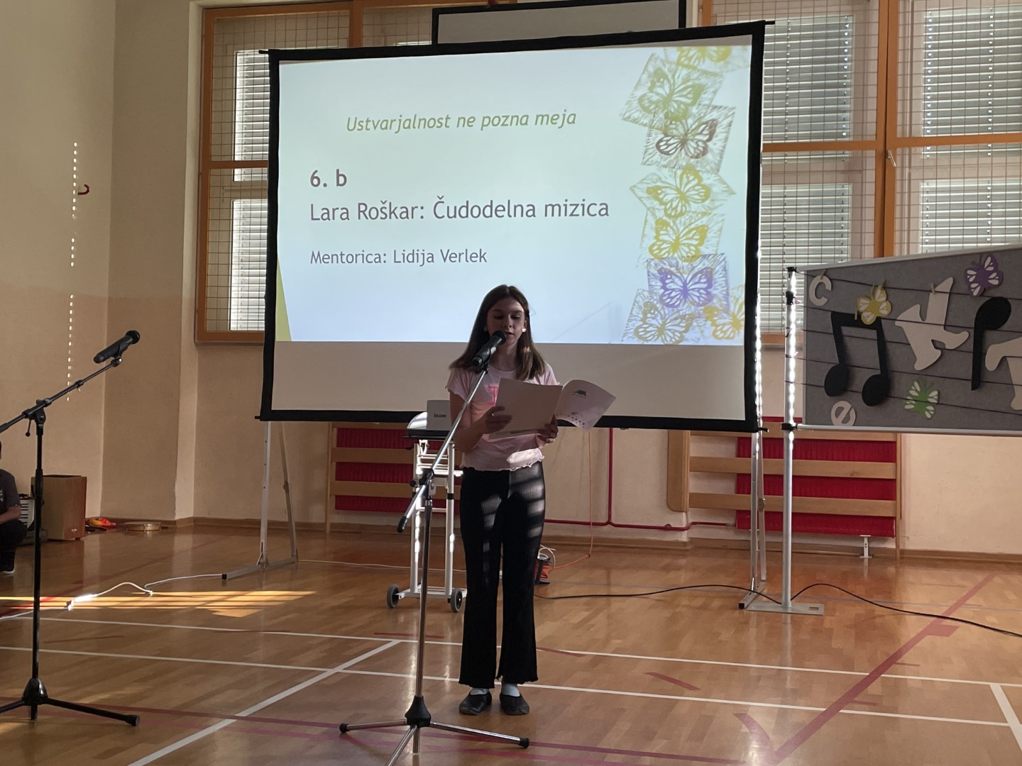 V četrtek, 1. junija 2023, so naši učenci na literarno-glasbenem večeru Ustvarjalnost ne pozna meja predstavili svoje pesmi, zgodbe in razmišljanja. Nekateri so se izrazili skozi glasbo in nam zapeli, zaigrali ter zaplesali.