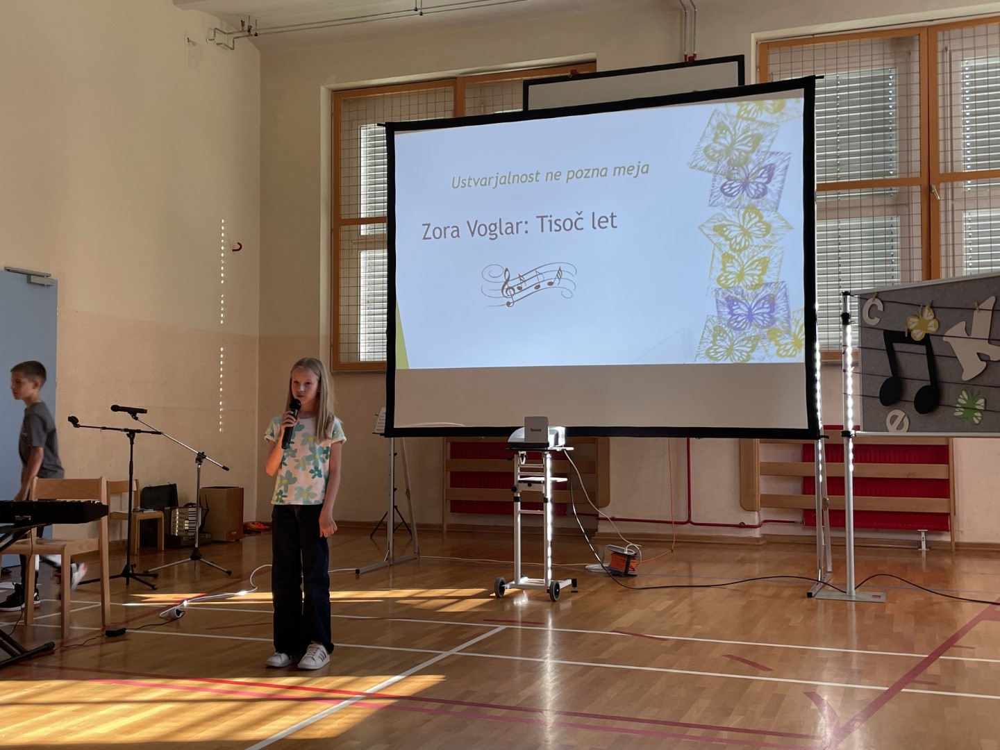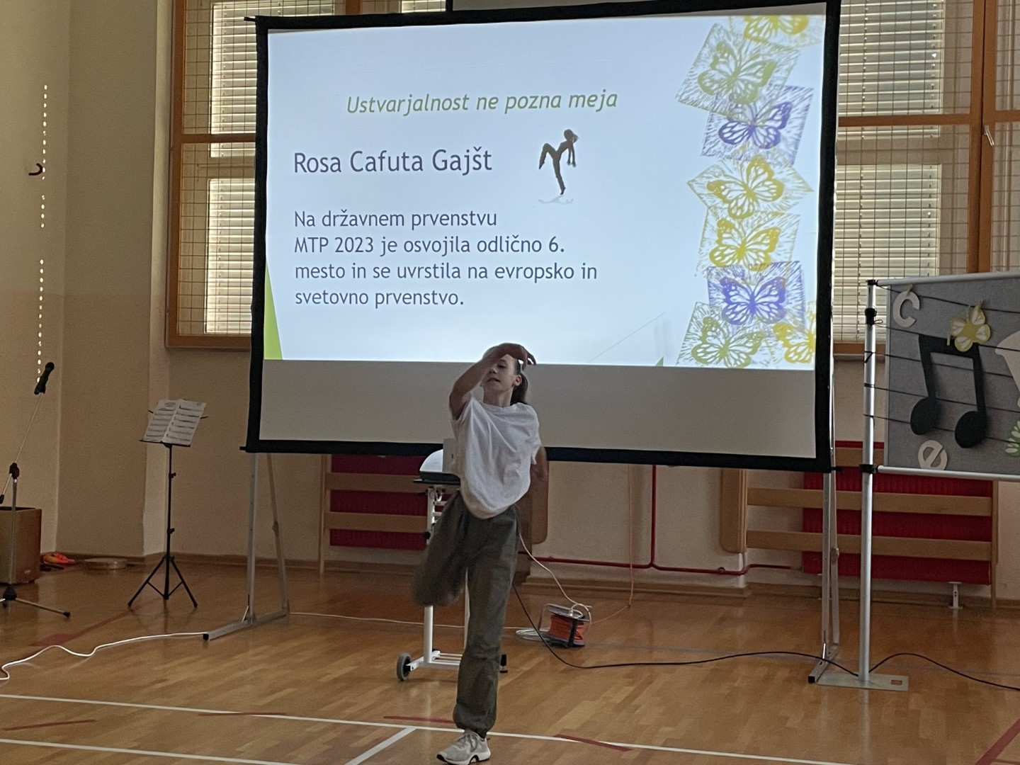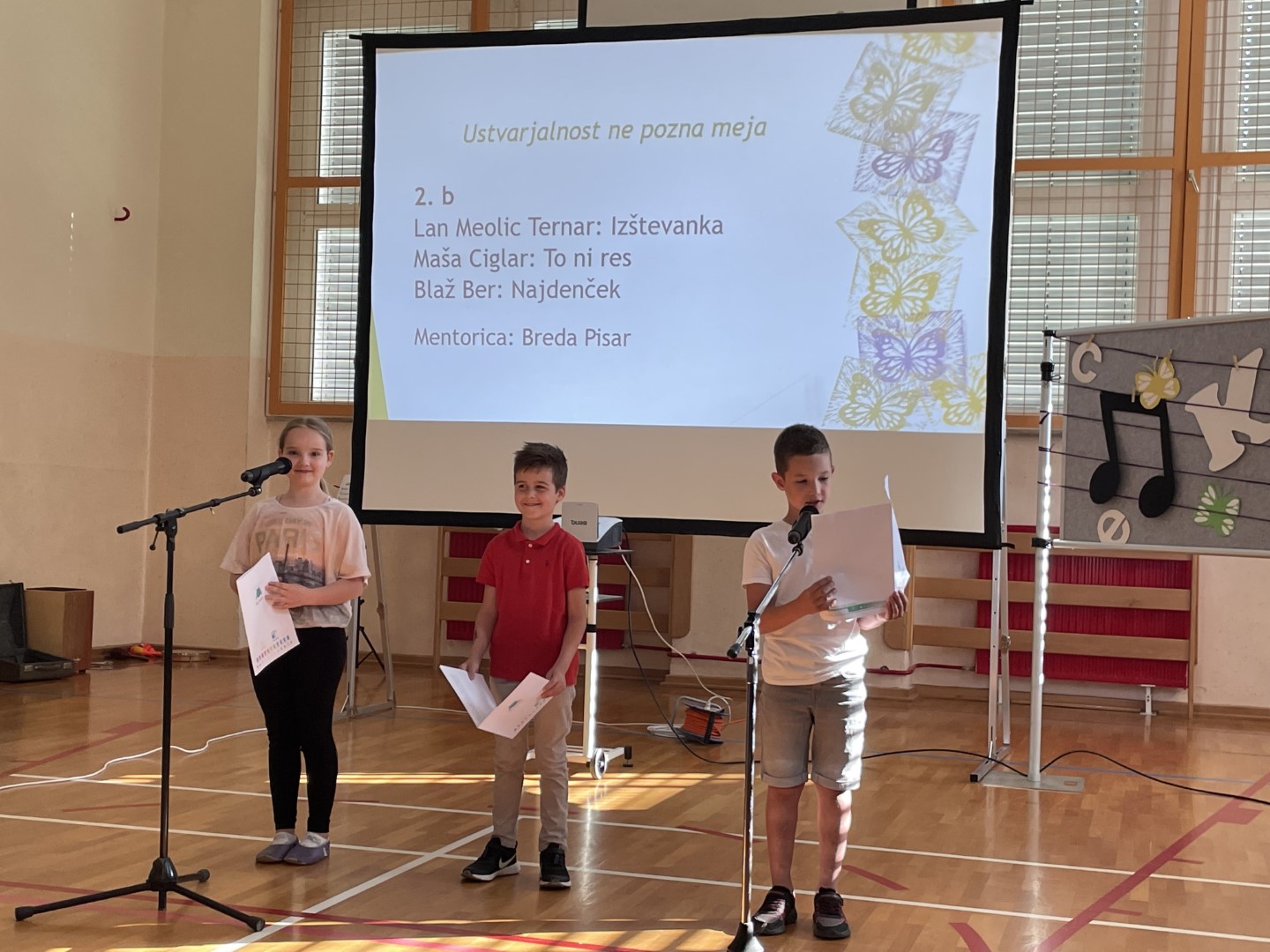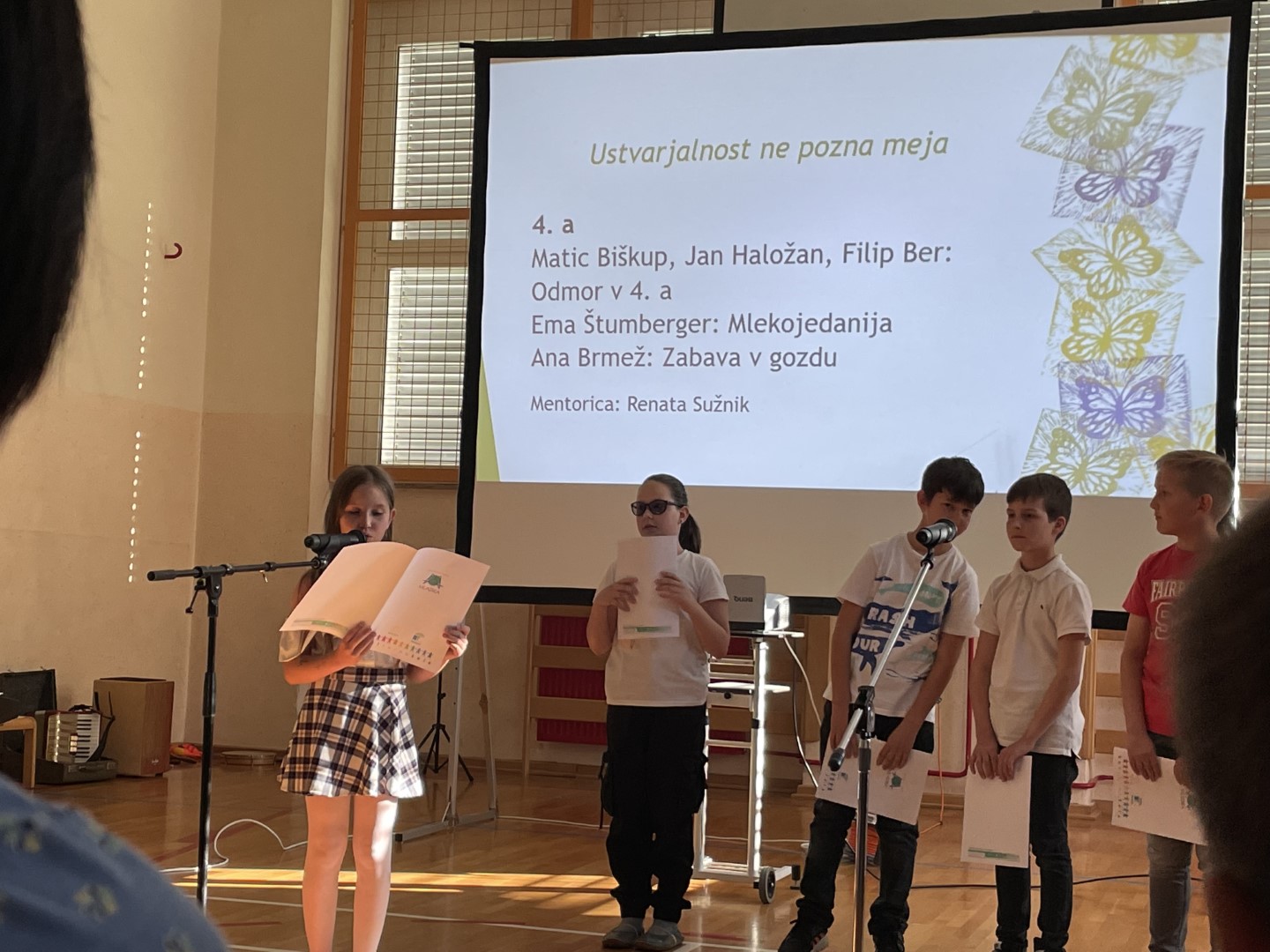 V četrtek, 1. junija 2023, so naši učenci na literarno-glasbenem večeru Ustvarjalnost ne pozna meja predstavili svoje pesmi, zgodbe in razmišljanja. Nekateri so se izrazili skozi glasbo in nam zapeli, zaigrali ter zaplesali.