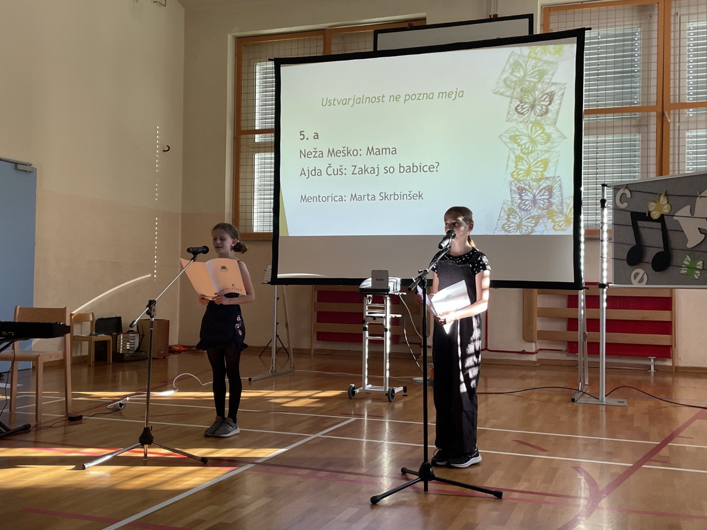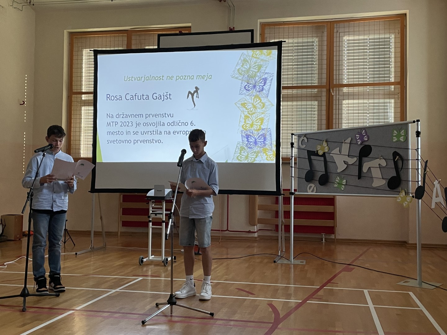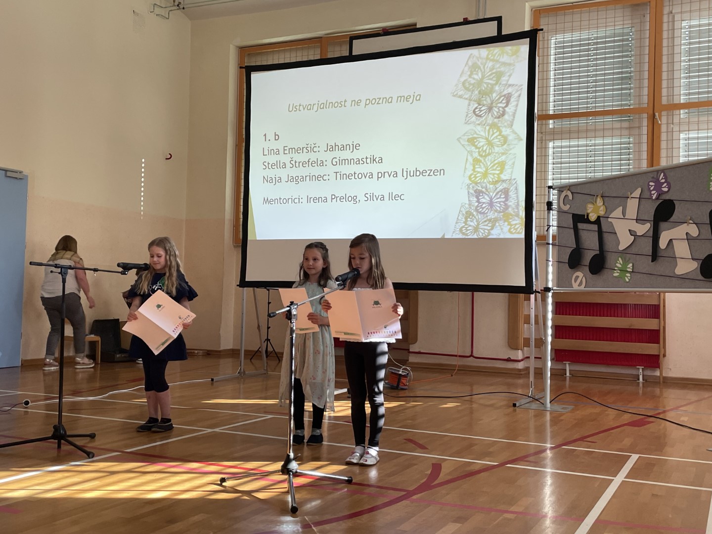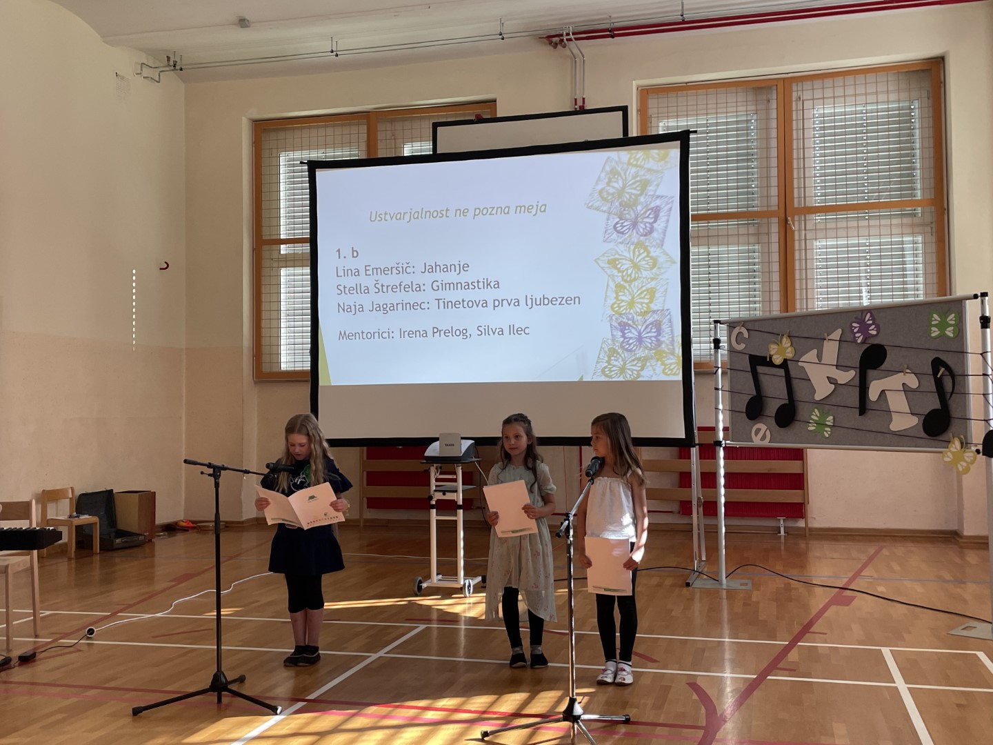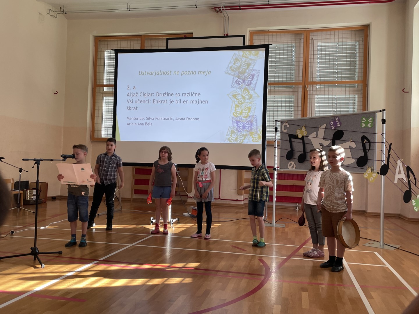 V četrtek, 1. junija 2023, so naši učenci na literarno-glasbenem večeru Ustvarjalnost ne pozna meja predstavili svoje pesmi, zgodbe in razmišljanja. Nekateri so se izrazili skozi glasbo in nam zapeli, zaigrali ter zaplesali.
