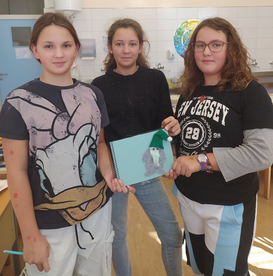 Čarna Kuhar, Liza Berlič in Frida Dimovski, učenke 7.a razreda, so izdelale tipno slikanico z naslovom Škratek spozna zimo, ki je zmagala na natečaju Oči na blazinicah prstov.