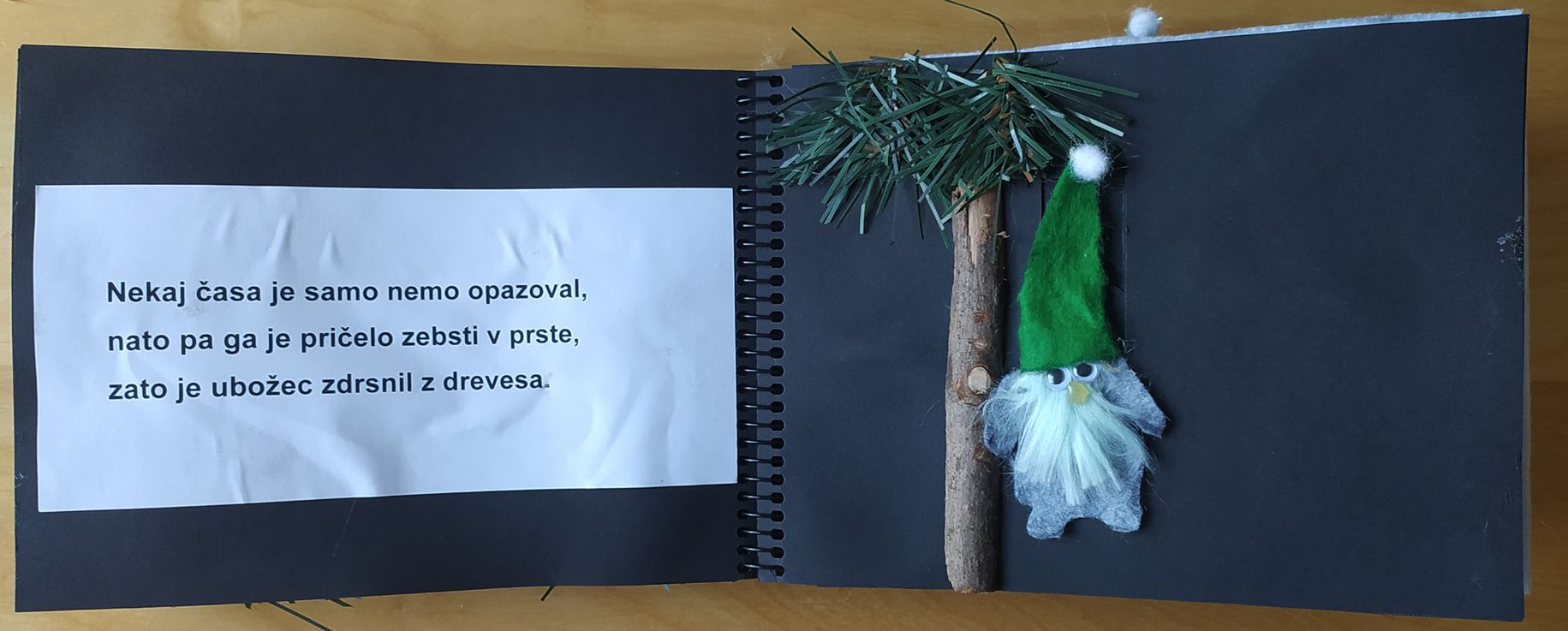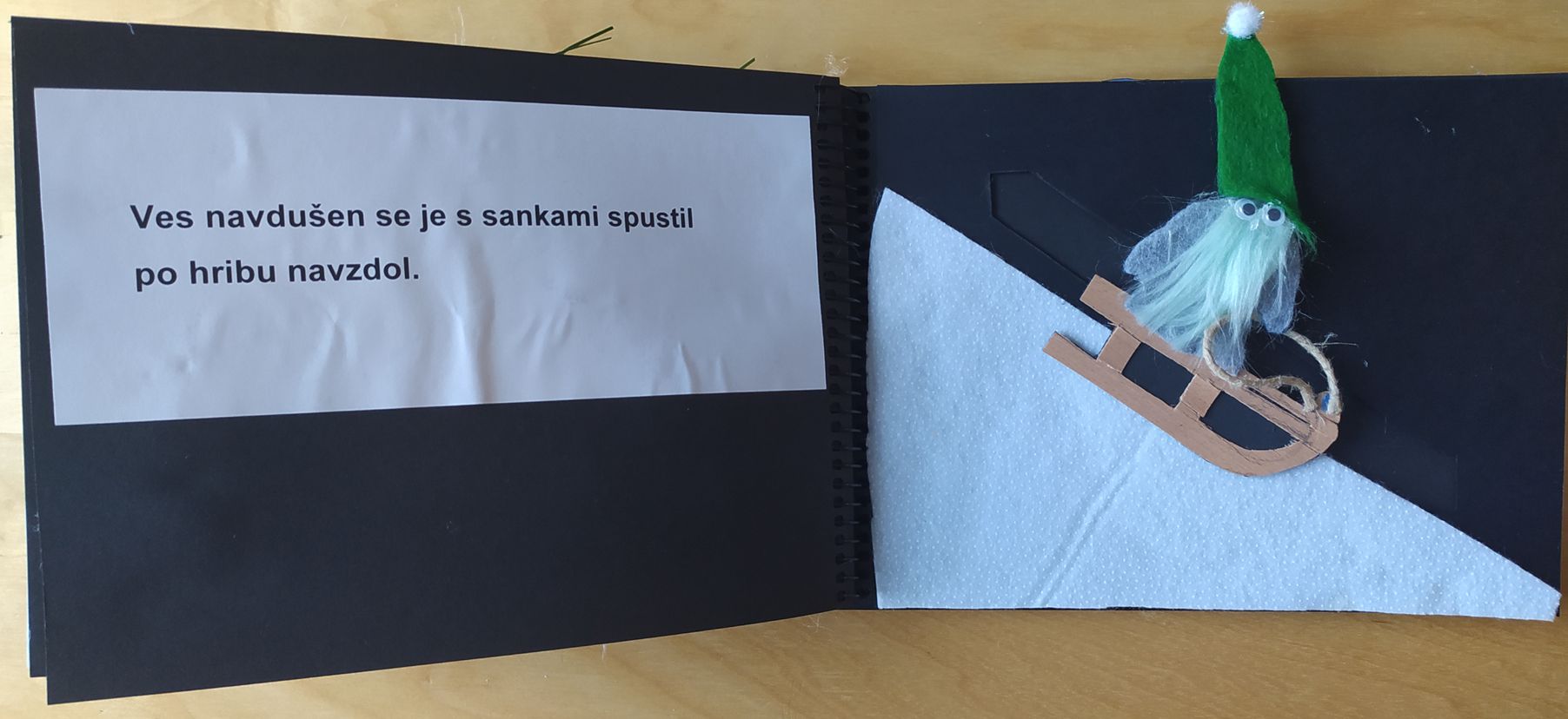 Zveza društev slepih in slabovidnih Slovenije je septembra objavila natečaj za najboljšo tipno slikanico Oči na blazinici prstov, namenjen učencem od 5. do 9. razreda osnovne šole. Tipne slikanice so knjige, ki slepim in slabovidnim omogočajo, da besedilo in ilustracije tipajo in tako lažje razumejo njihovo vsebino ter uživajo ob slikah. Na zvezo društev je prispelo več kot 30 zanimivih in unikatnih slikanic, zato je imela komisija zelo zahtevno nalogo. Odločili so se, da 1. mesto podelijo slikanici Škratek spozna zimo, ki so jo ustvarile učenke naše šole. Prepričale so jih z izvirno zgodbo, z ilustracijami, na katerih se predmeti premikajo in z izbranimi materiali.