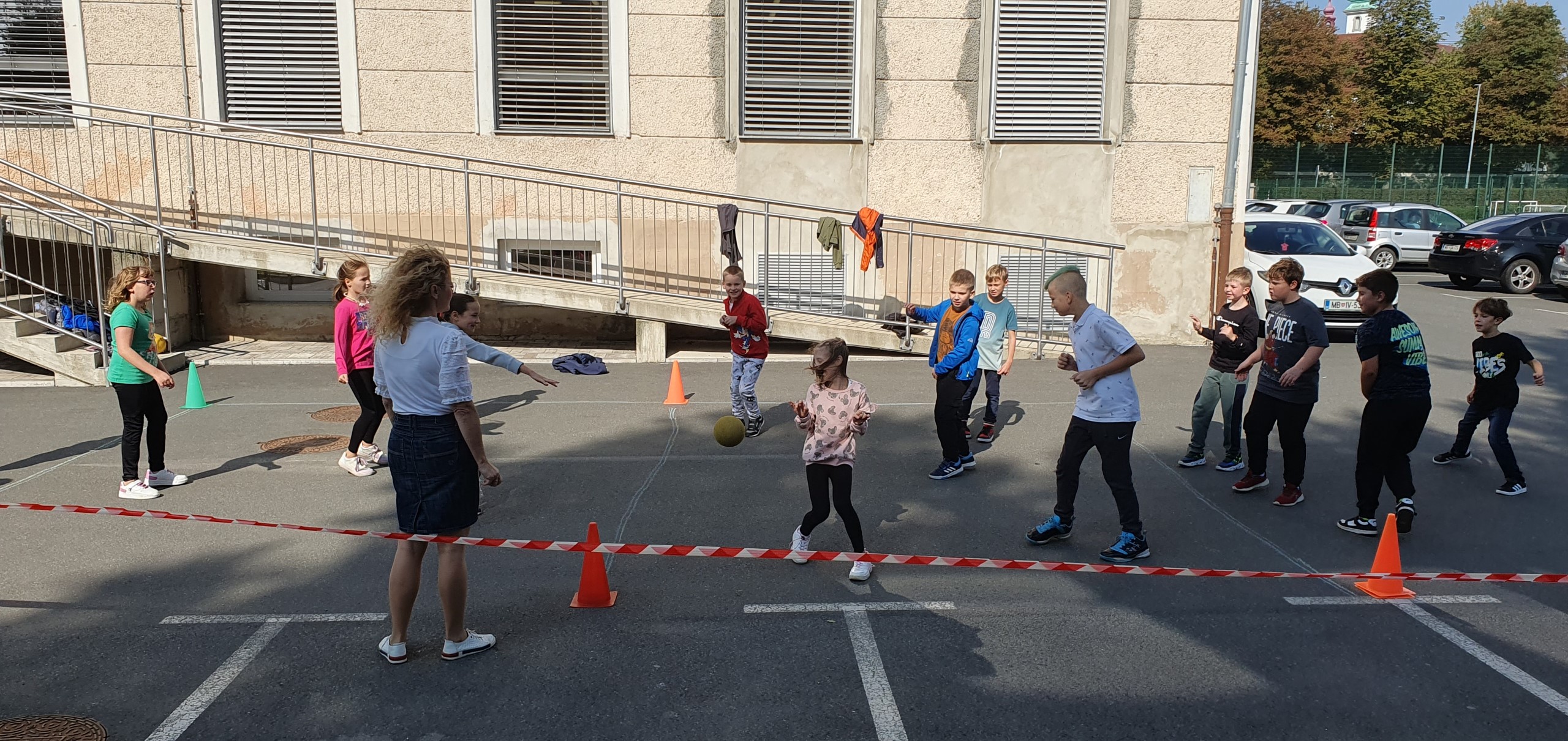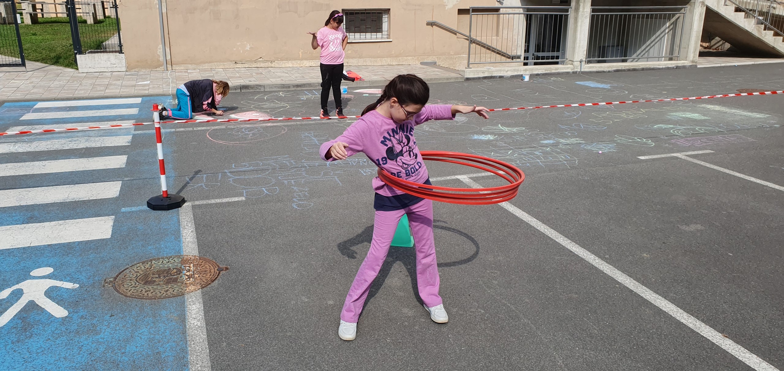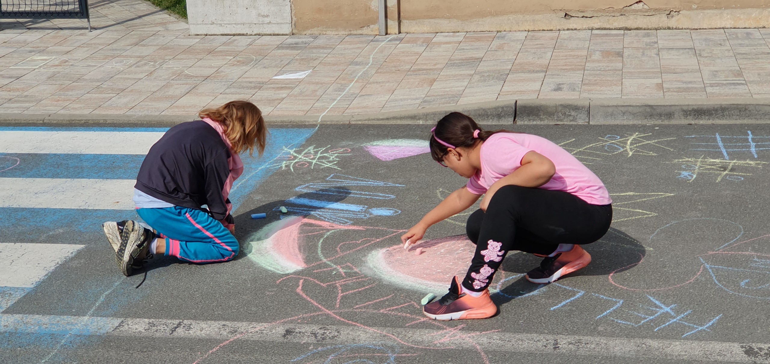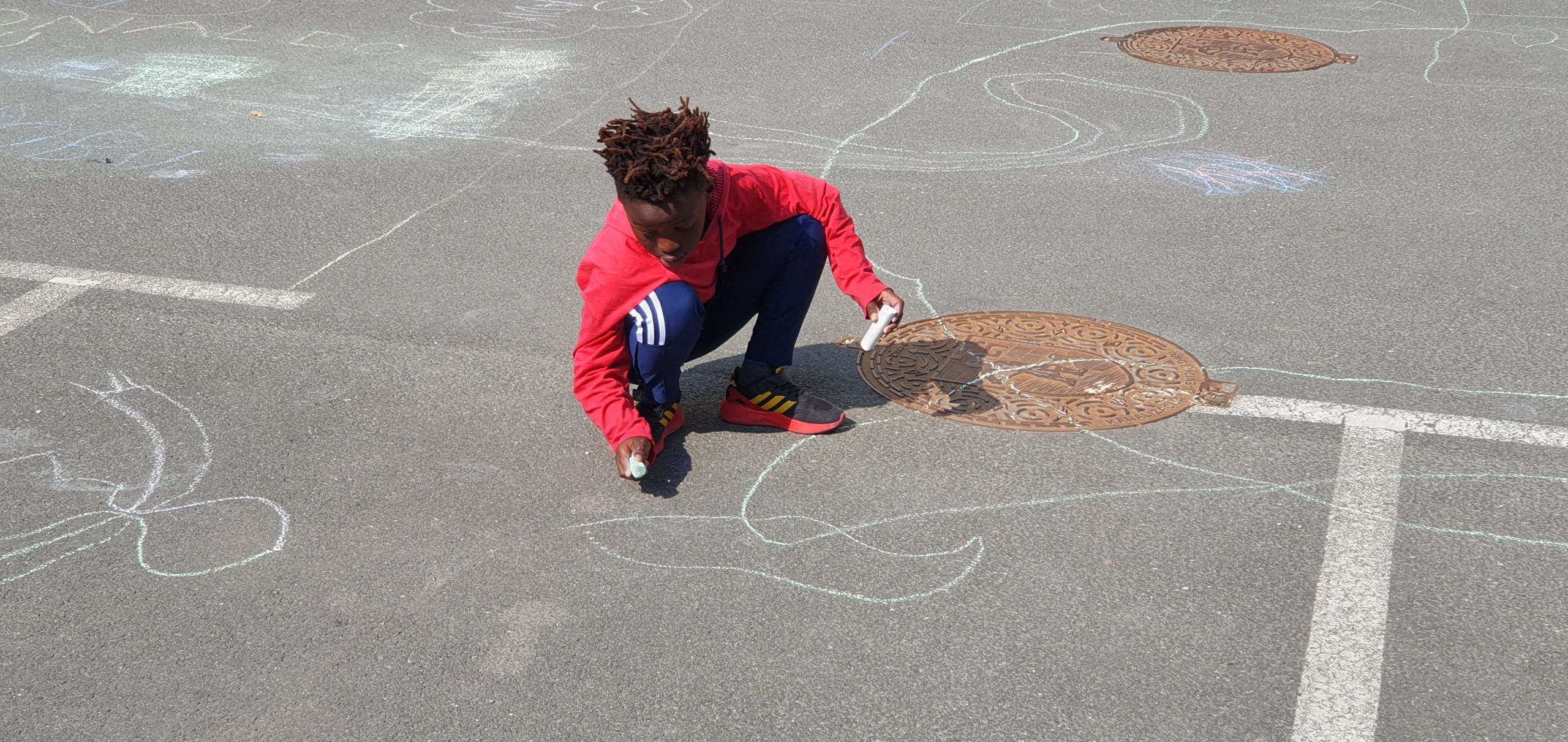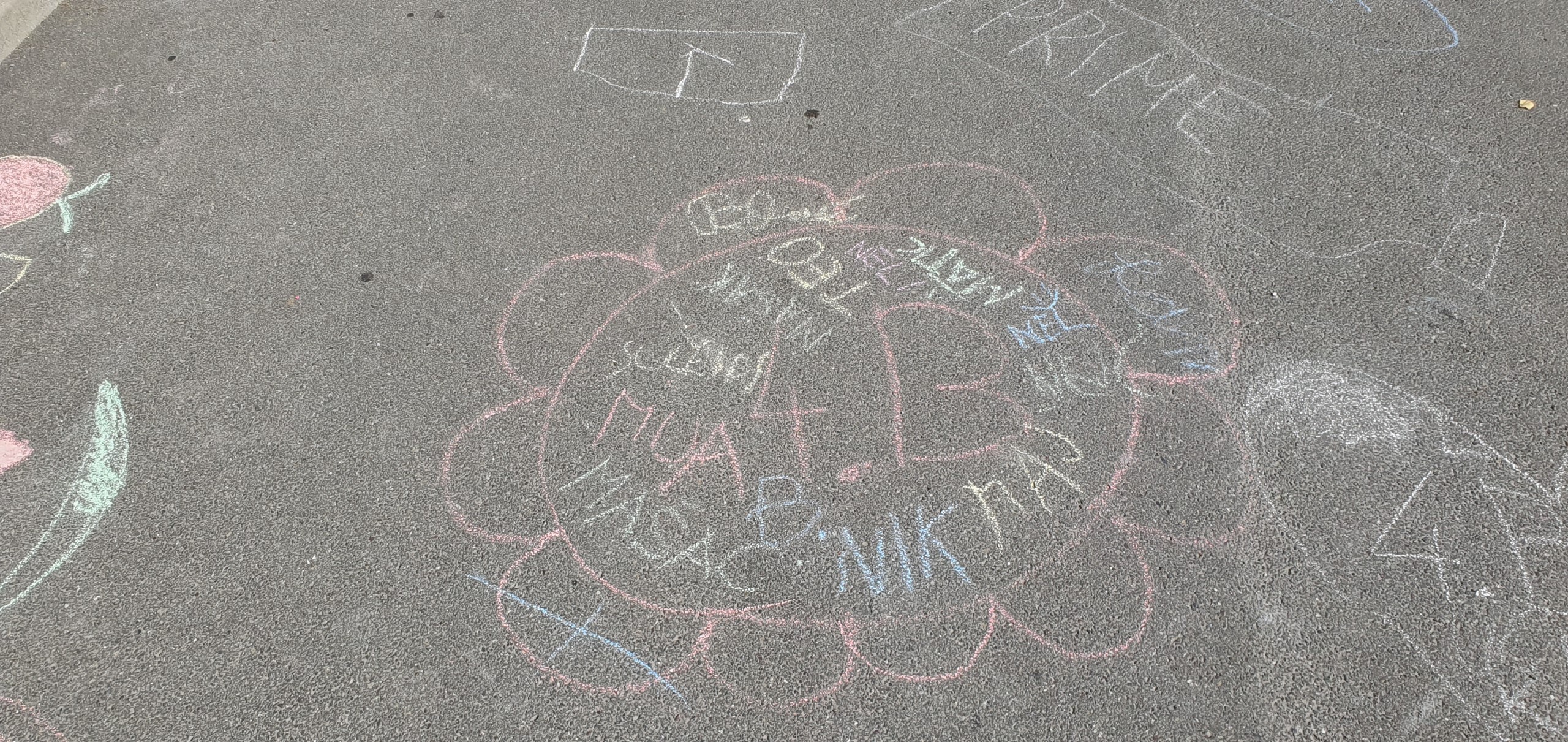 Otroci v parku ali telovadnici ne morejo risati na tla, zato smo našim otrokom omogočili ustvarjanje s kredami na našem šolskem parkirišču.