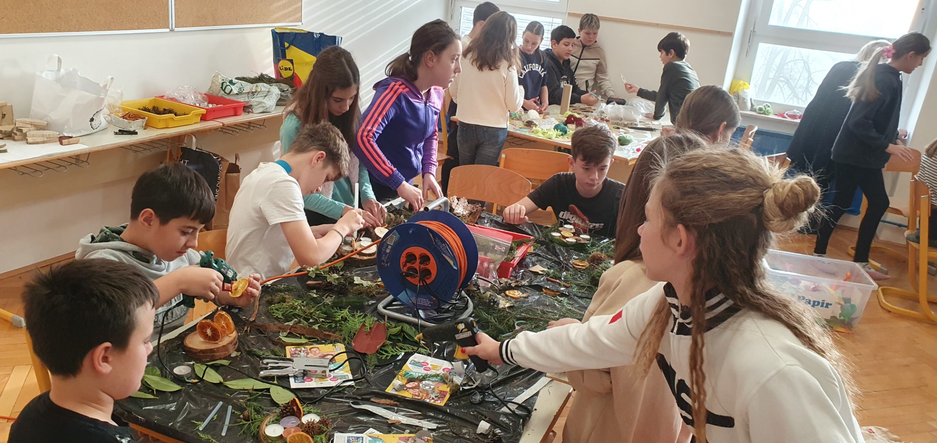 Prvi decembrski ponedeljek je na naši šoli namenjen tehniškemu dnevu. Dopoldne so učenci ustvarjali izdelke, ki jih bodo ponudili na novoletni tržnici v popoldanskem času. Nekaj izdelkov so ustvarili tudi v oddelkih RaP in z njimi okrasili šolsko jelko, ki si jo lahko obiskovalci ogledajo v šolski avli. Vse starše pa vabimo, da se udeležijo naše novoletne tržnice.