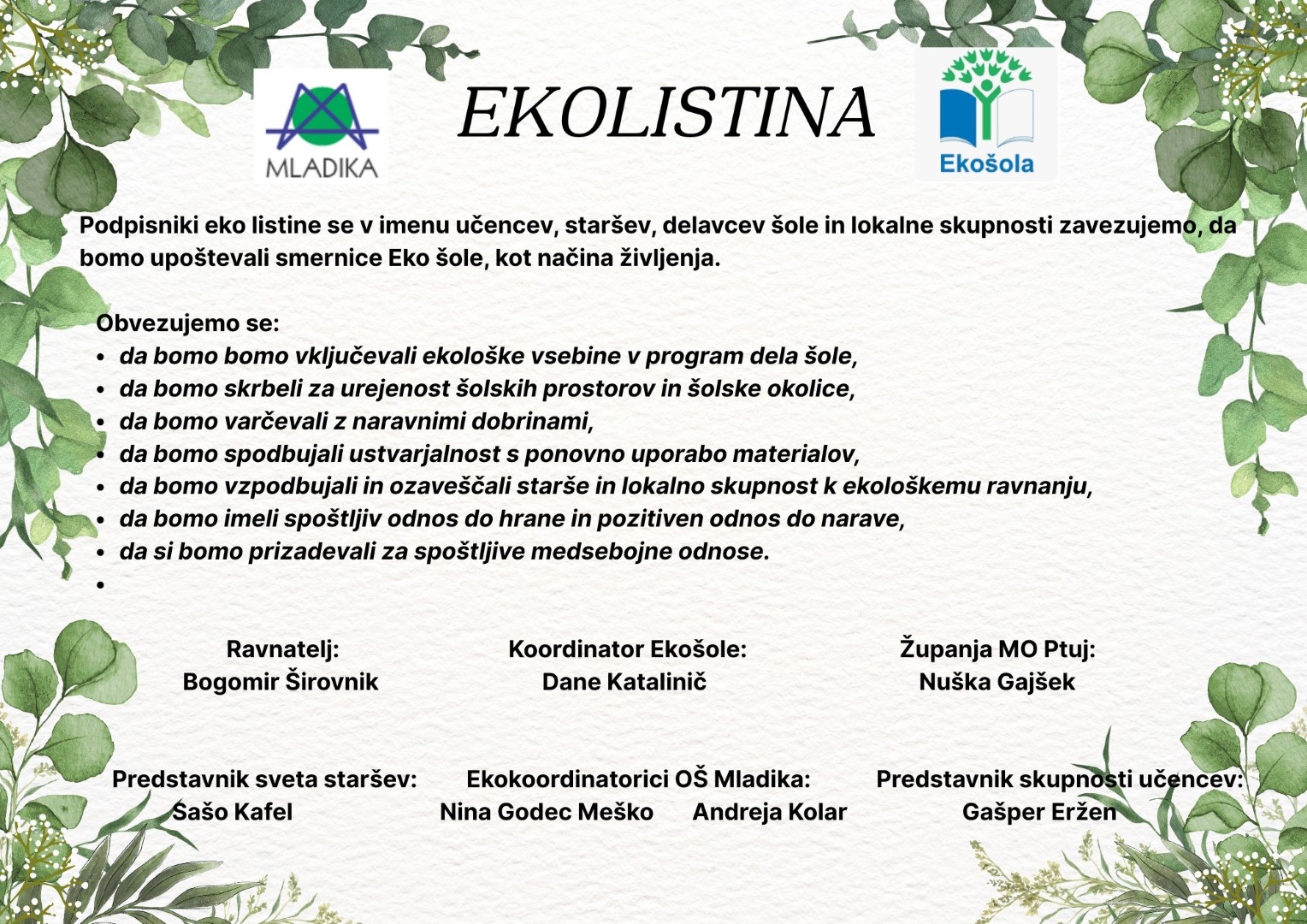 Vrhunec dneva je predstavljala slavnostna obnova in podpis ekolistine, s čimer smo ponovno potrdili našo zavezanost k trajnostnemu in okoljsko odgovornemu delovanju.