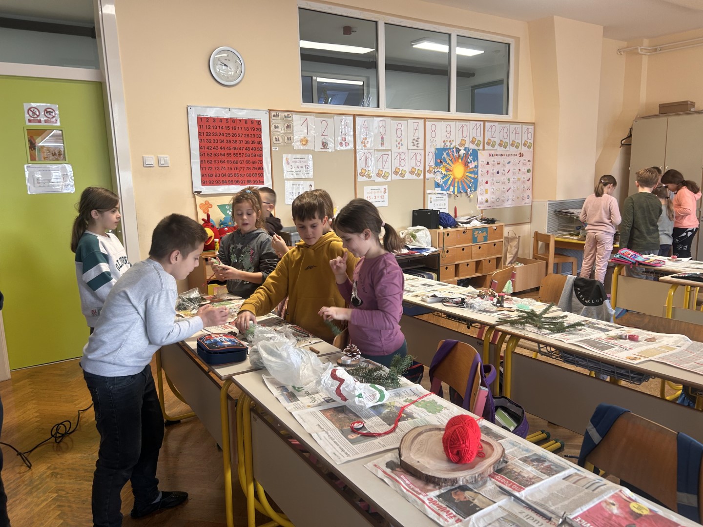 V ponedeljek, 1. decembra je na naši šoli potekal tehnični dan, namenjen ustvarjanju prazničnih izdelkov. Učenci so pod vodstvom učiteljev izdelovali različne okraske, oblikovali aranžmaje ter sodelovali pri peki keksov. Pri delu so pokazali veliko ustvarjalnosti in medsebojne pomoči.
