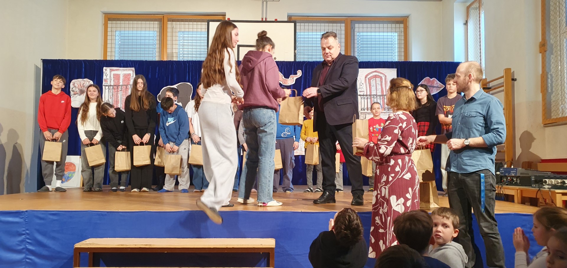 Ob zaključku prireditve je ravnatelj podelil nagrade učencem, ki so pravilno rešili šolski kviz o Francetu Prešernu. Vsem sodelujočim iskreno čestitamo za trud, znanje in lepo predstavitev.