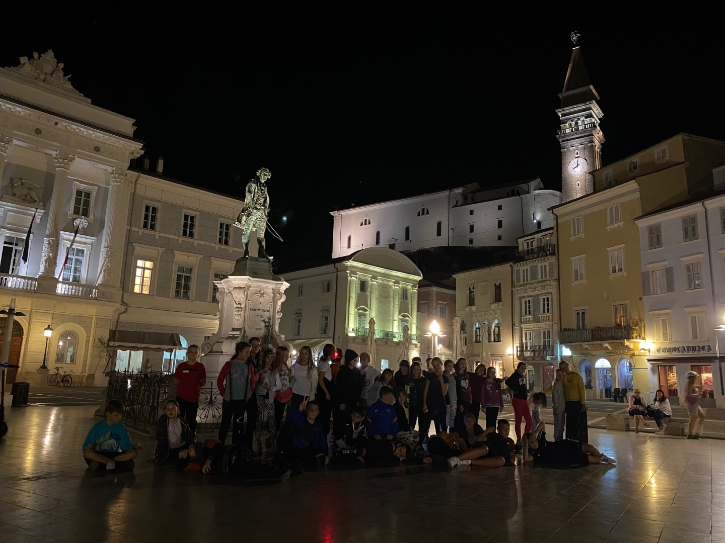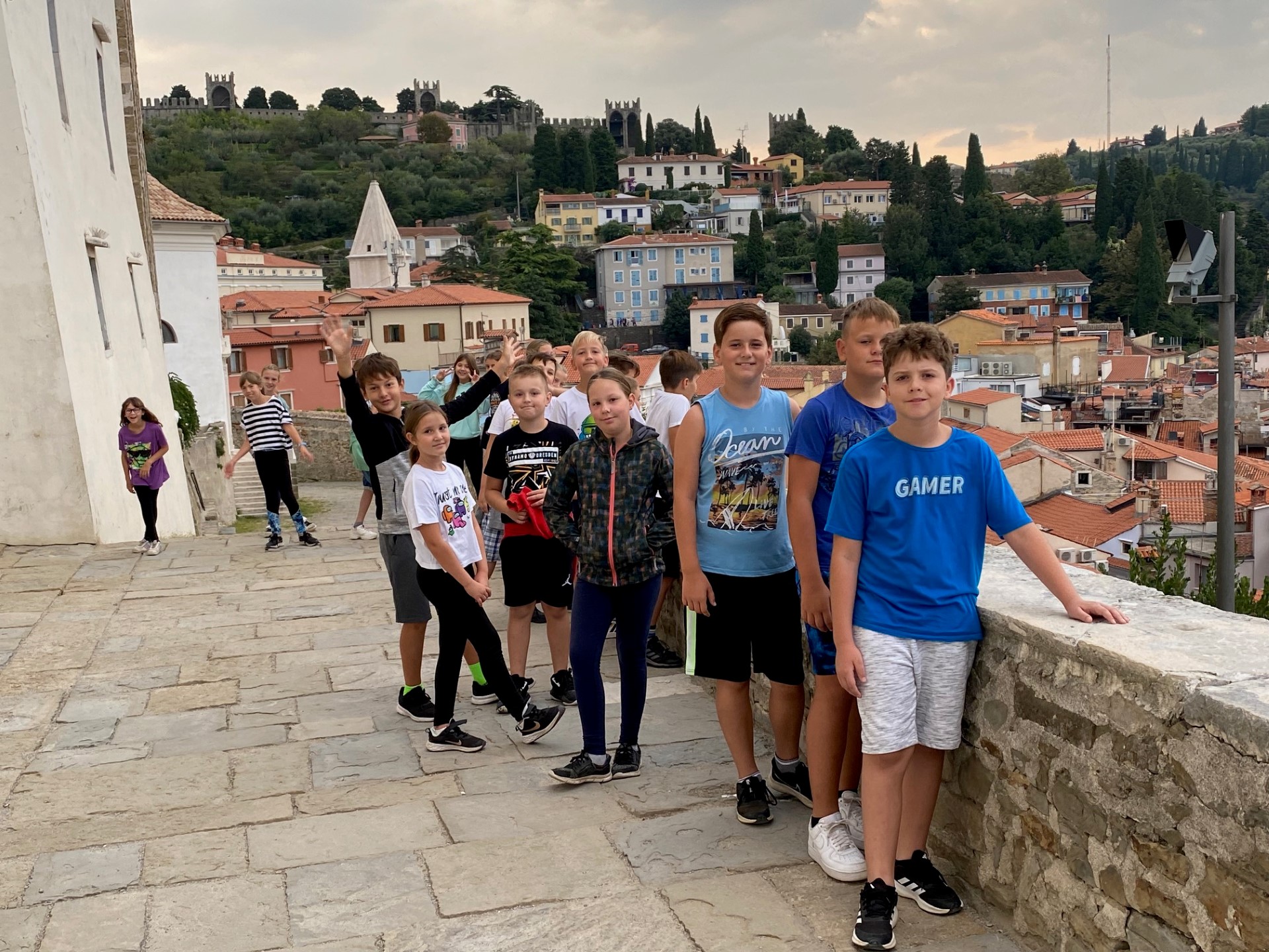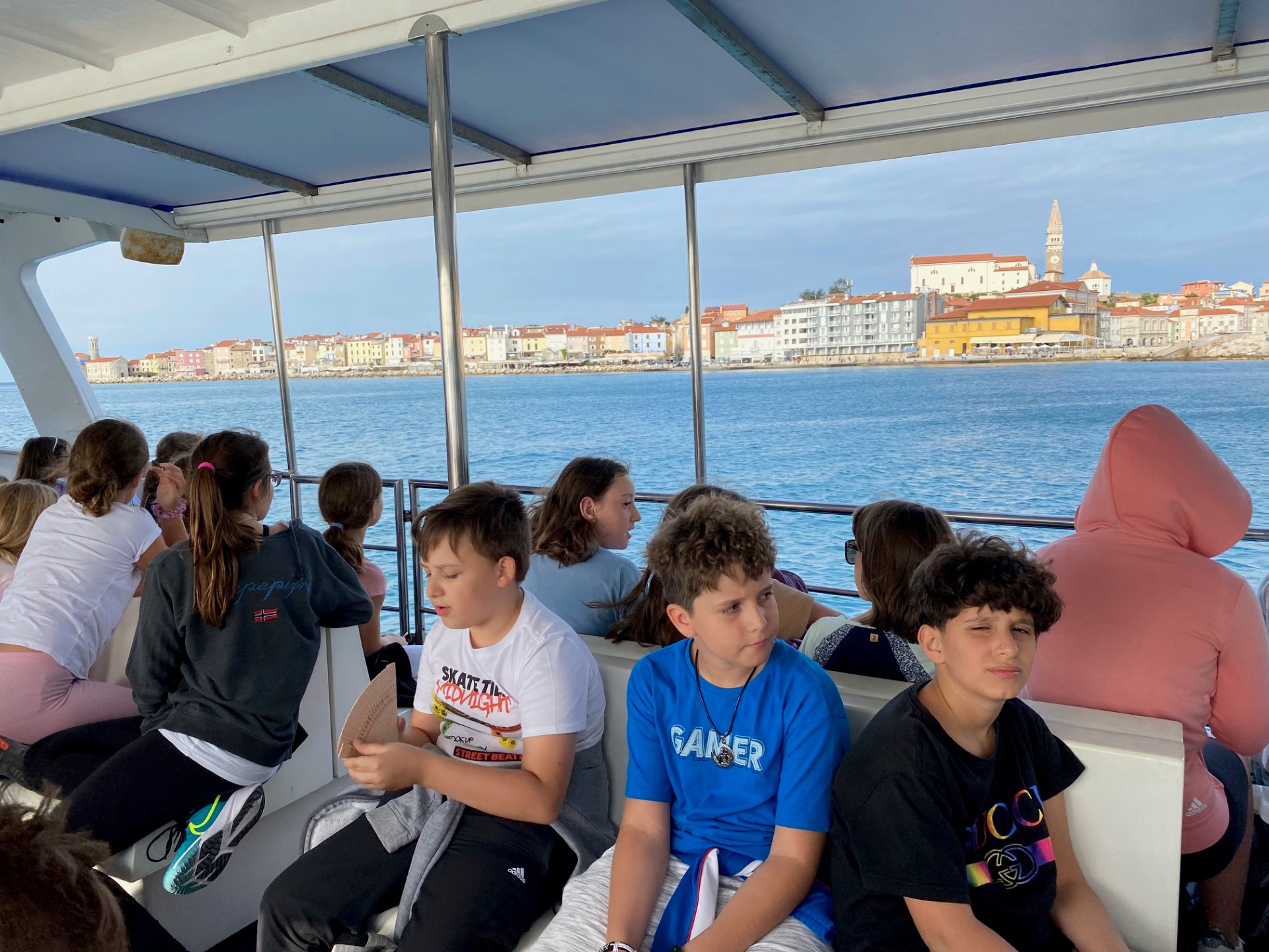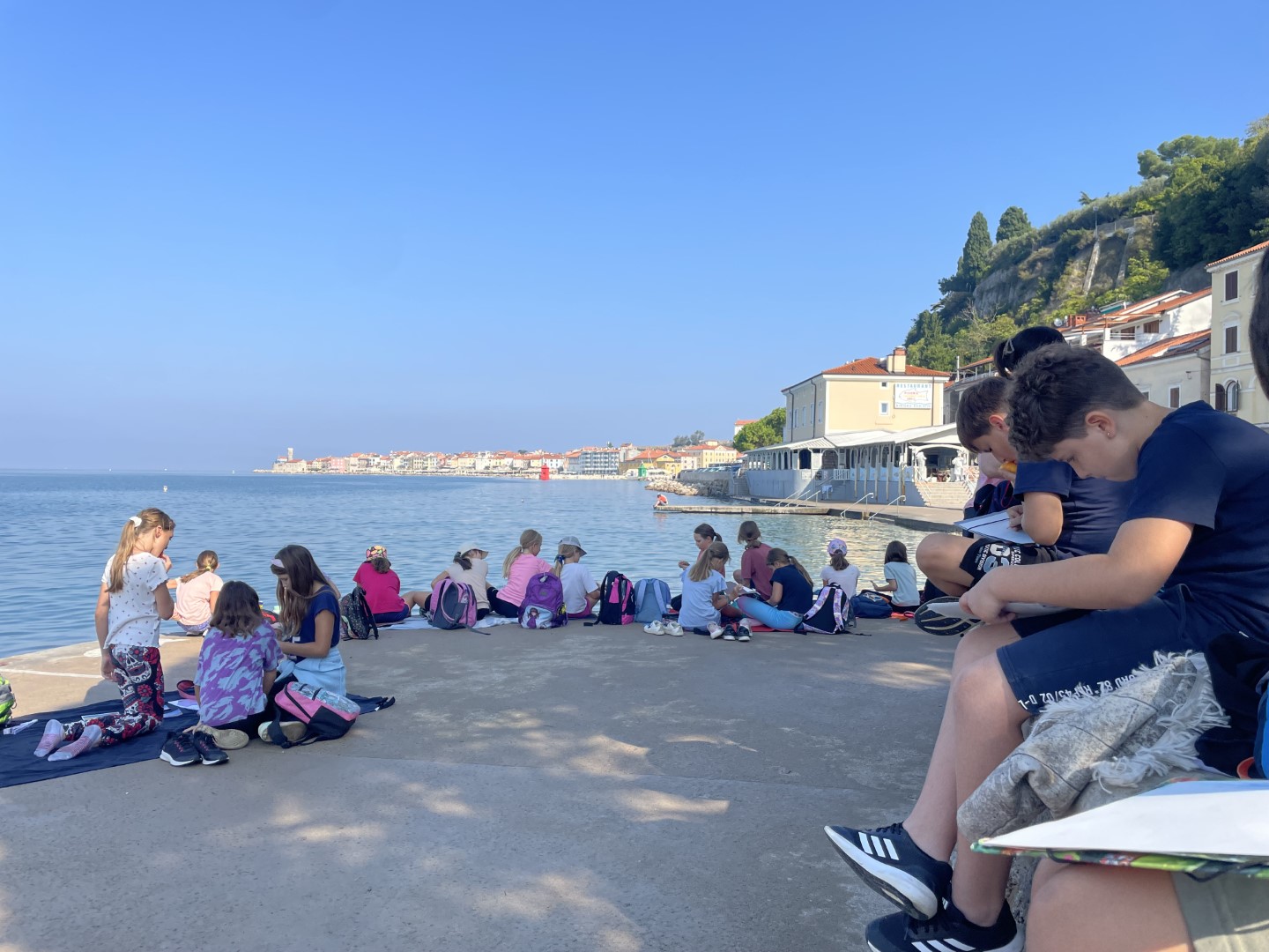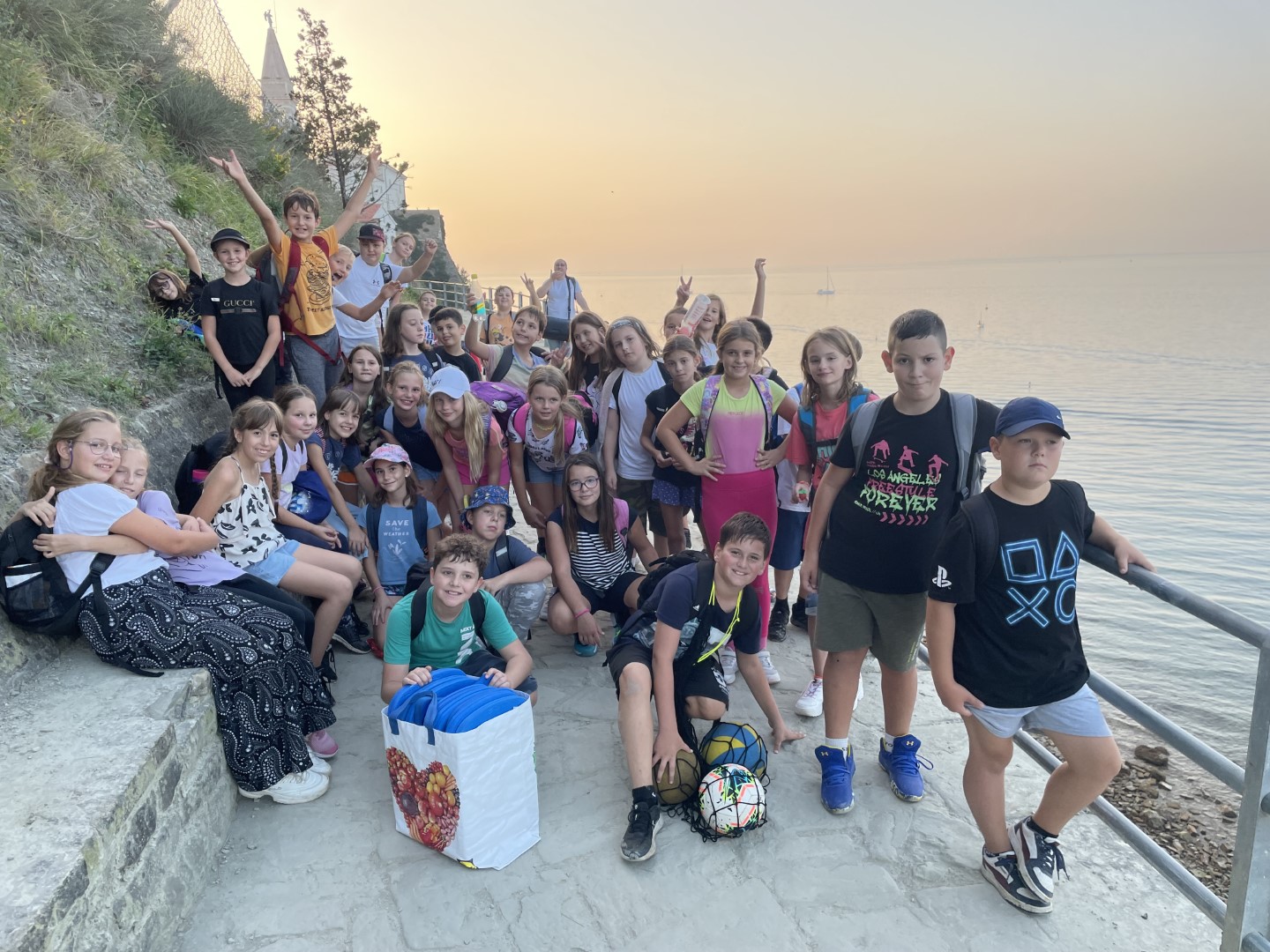 Danes smo raziskovali Piran, veliko plavali, se igrali in ob sončnem zahodu opazovali delfine.
