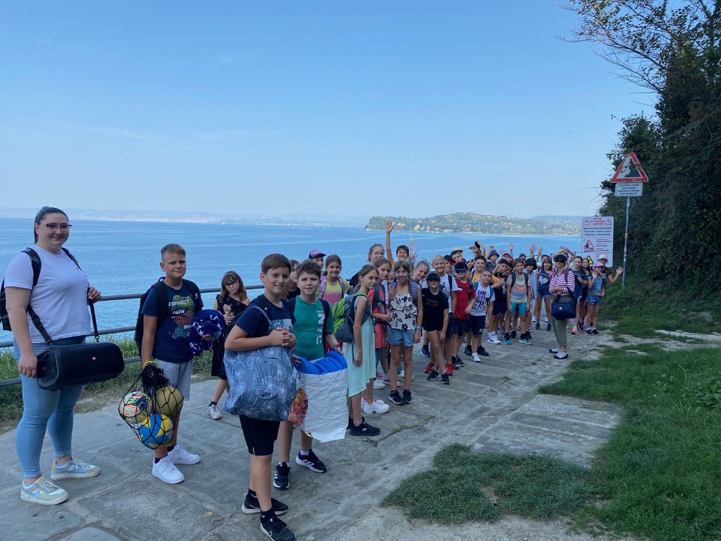 Prvi dan smo obiskali Luko Koper, plavali, se igrali, dobro jedli in dan zaključili z večernim pohodom.