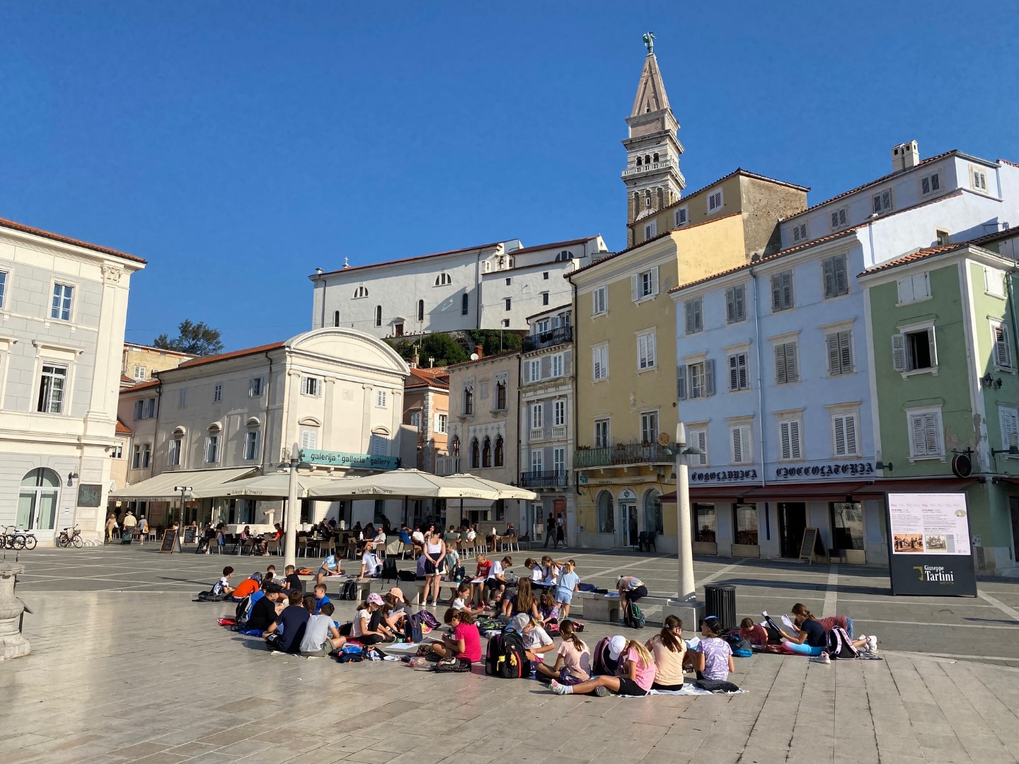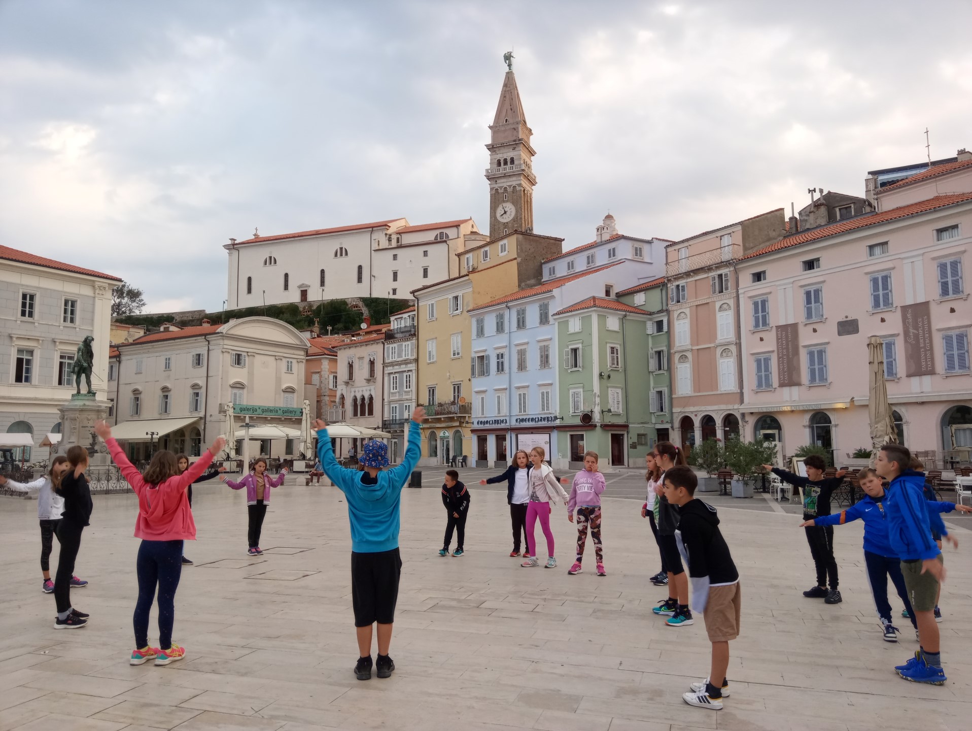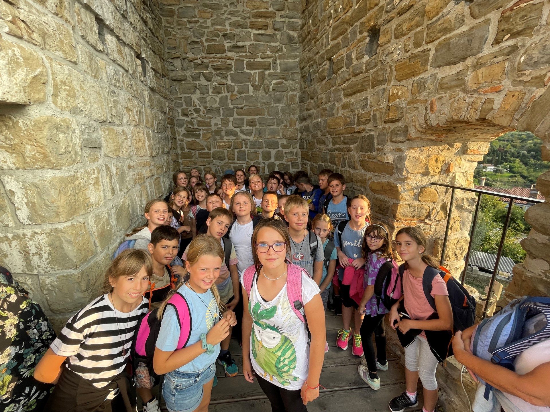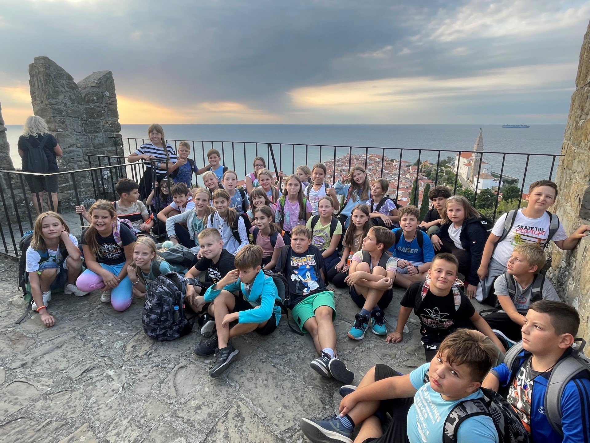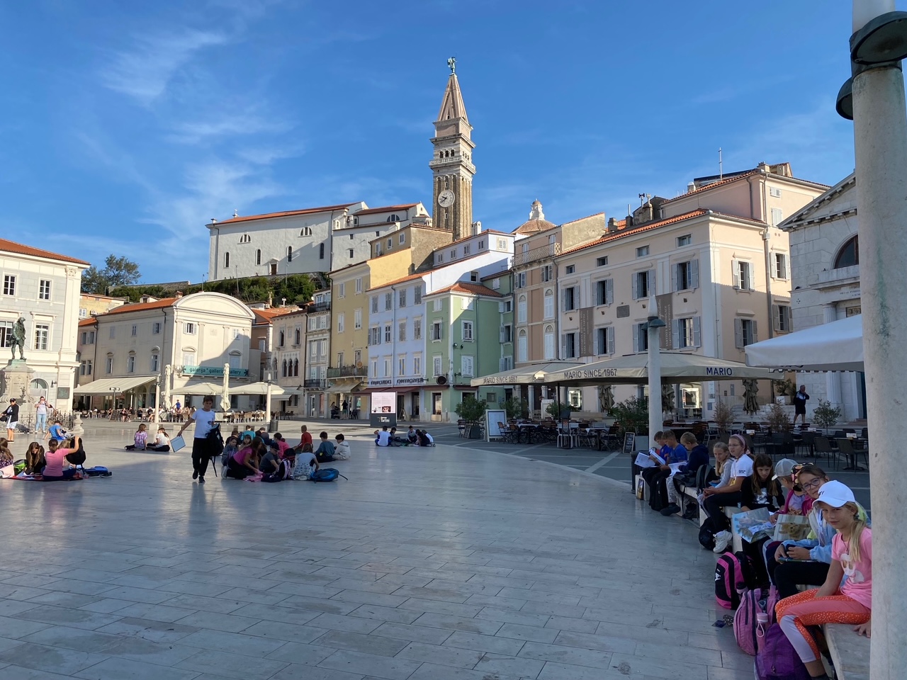 Zadnj dan šole v naravi smo ustvarjali na Tartinijevem trgu, še zadnjič uživali ob čudovitem pogledu med kosilom ter občudovali Postojnsko jamo.