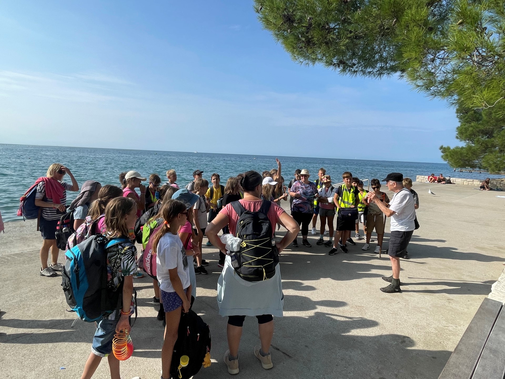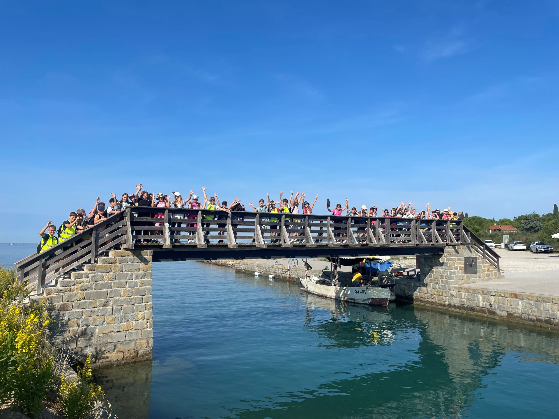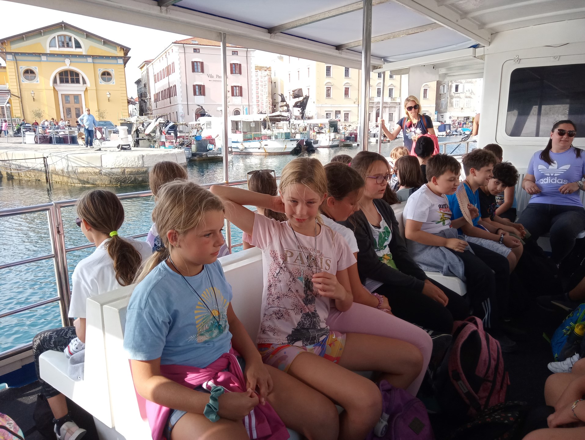 Zjutraj smo spoznavali živali v akvariju, se kopali in uživali na obali. Popoldan smo z ladjico raziskovali podvodni svet, se povzpeli na grajsko obzidje, se igrali na igrišču in ponovno opazovali delfine.