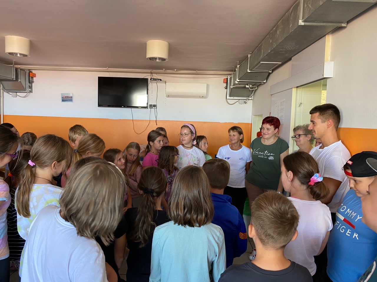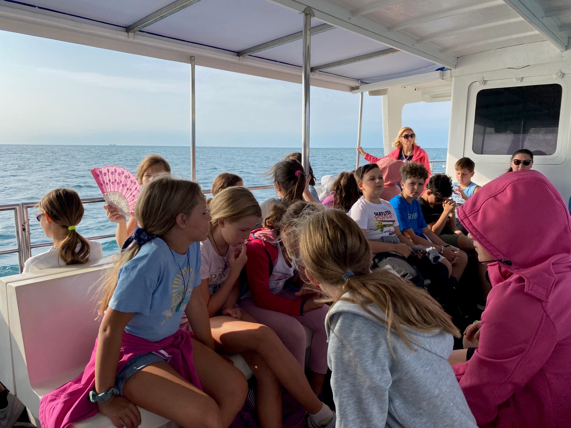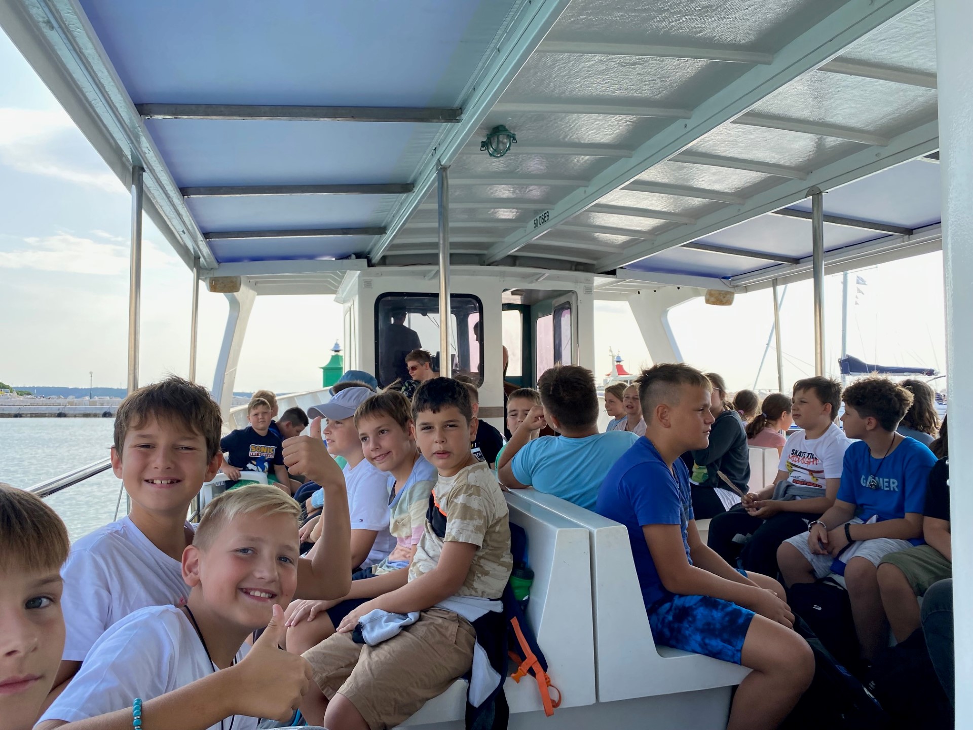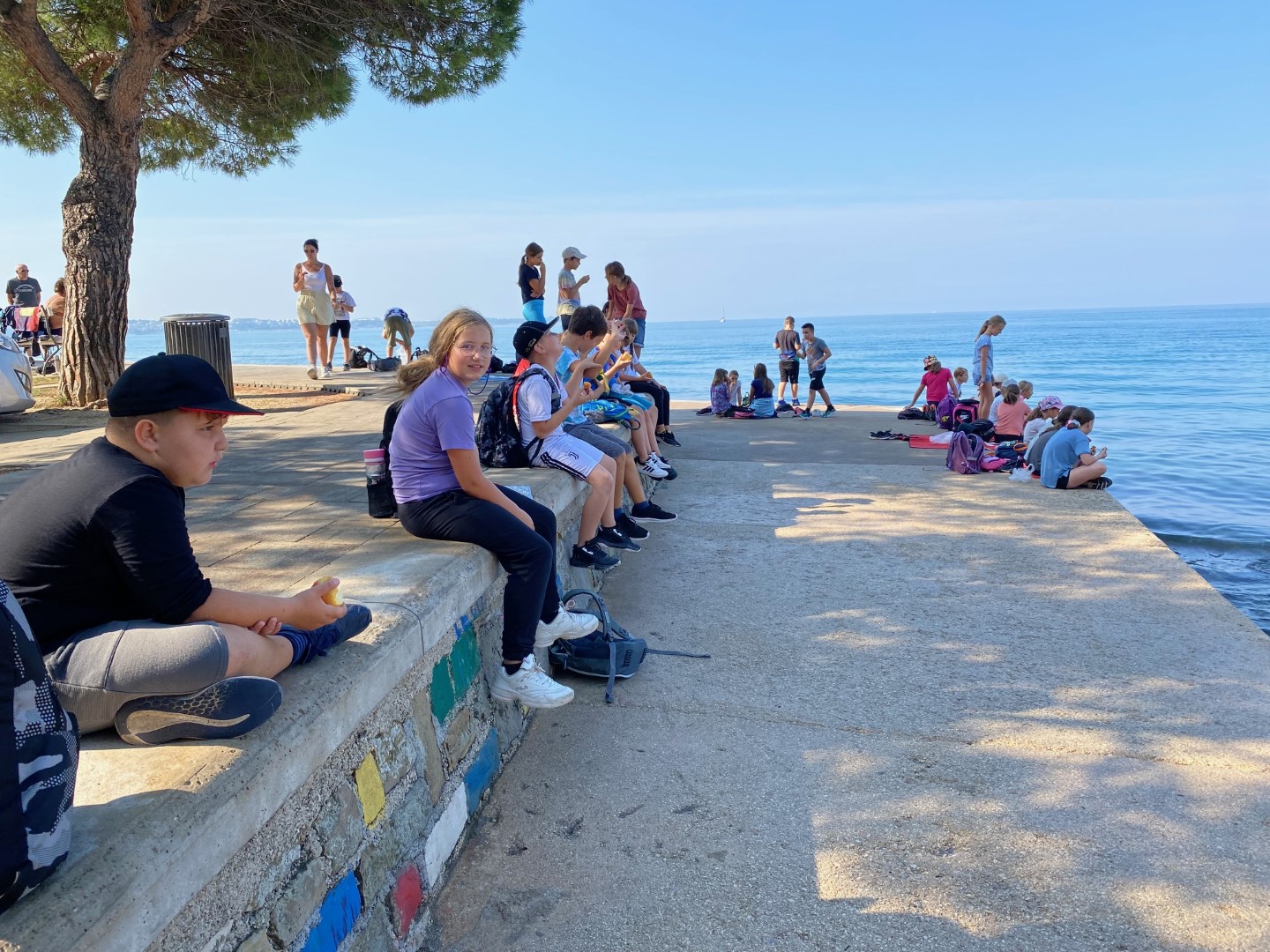 Zjutraj smo spoznavali živali v akvariju, se kopali in uživali na obali. Popoldan smo z ladjico raziskovali podvodni svet, se povzpeli na grajsko obzidje, se igrali na igrišču in ponovno opazovali delfine.