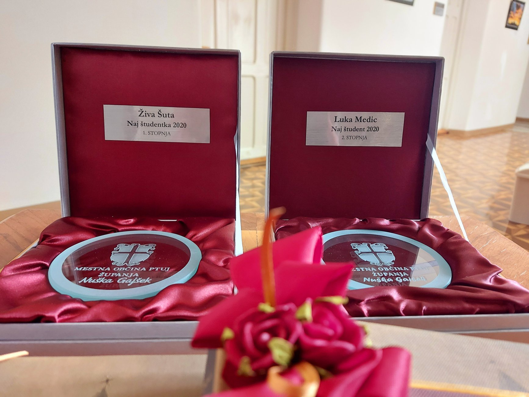 Komisija za podeljevanje priznanj in nagrad najboljšim študentom Mestne občine Ptuj je na podlagi prejetih prijav in kriterijev pravilnika izbrala za naj študente za študijsko leto 2019/2020 dva naša bivša učenca.