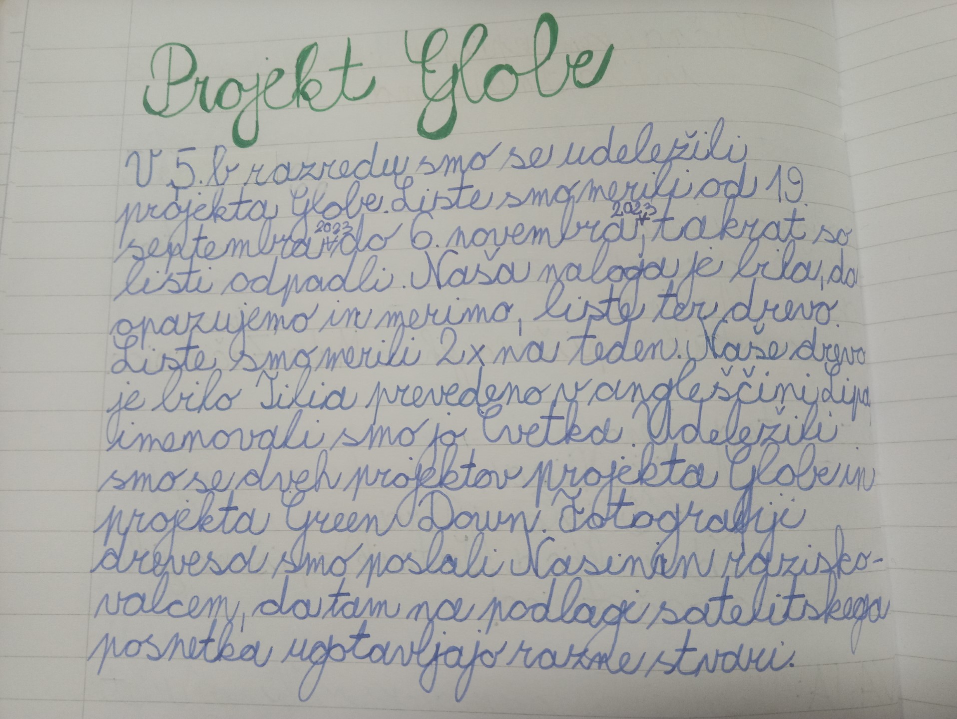 Z učenci 5. a in 5. b razreda smo se letošnje šolsko leto 2023/2024 odločili, da sodelujemo v projektu Globe Elementary, ki je namenjen učencem razredne stopnje.