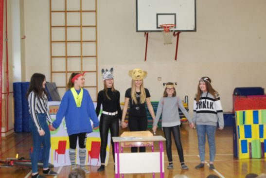 Učenke 7. b so odlično odigrale zabavno predstavo Prvi šolski dan in nas nasmejale.