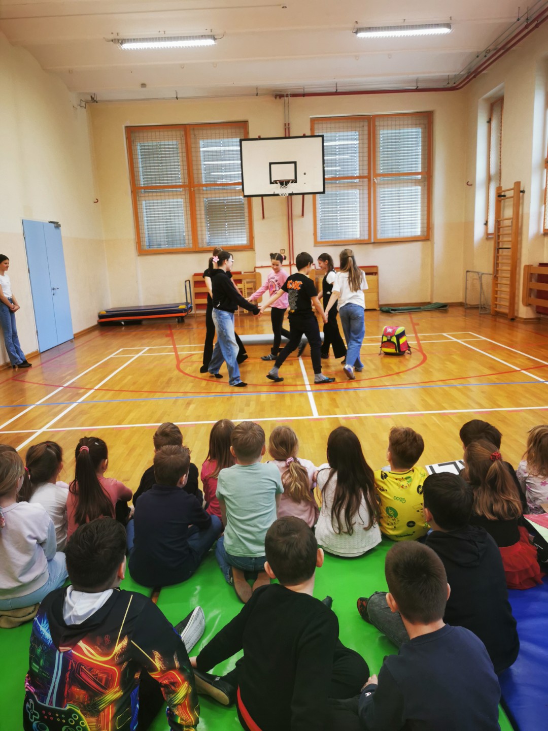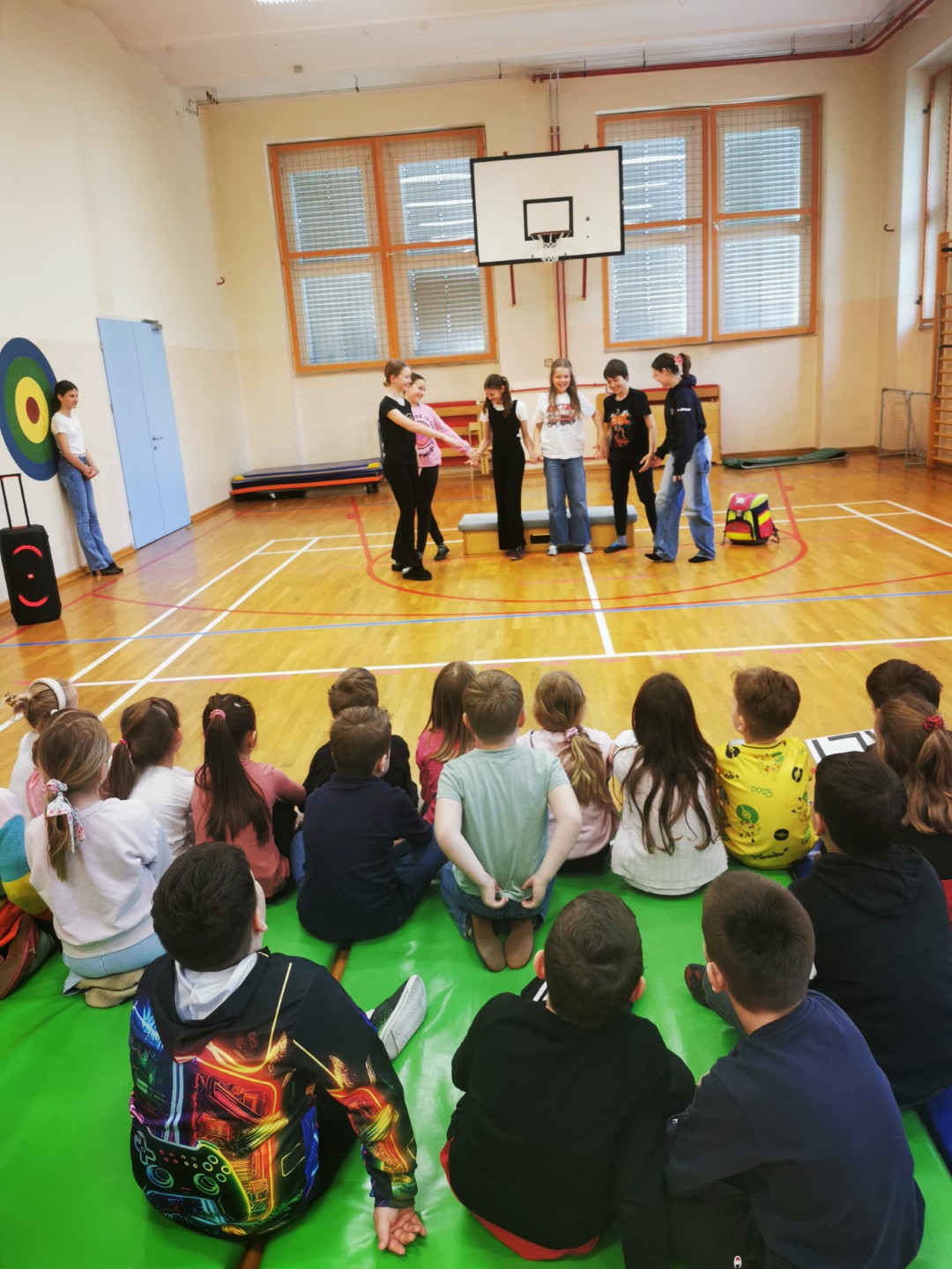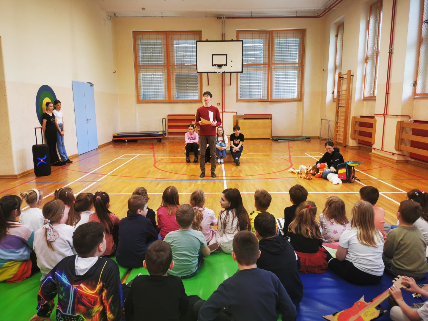 V petek, 11. 4. 2025, smo na šoli pripravili sprejem prvošolcev v skupnost učencev šole. Pozdravil in nagovoril jih je predsednik šolske skupnosti Gašper Eržen. Učenci 6. b pa so jim odigrali kratko uprizoritev na temo prvega šolskega dne. Preden smo sprejeli prvošolce, so se morali dokazati. Sodelovali so v kvizu in tako dokazali, da že dobro poznajo Mladiko.