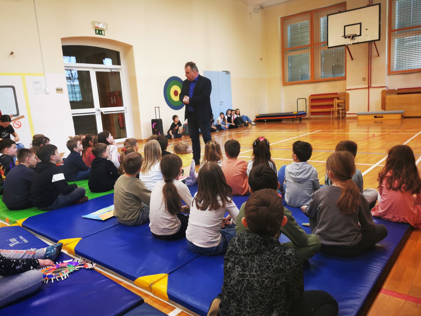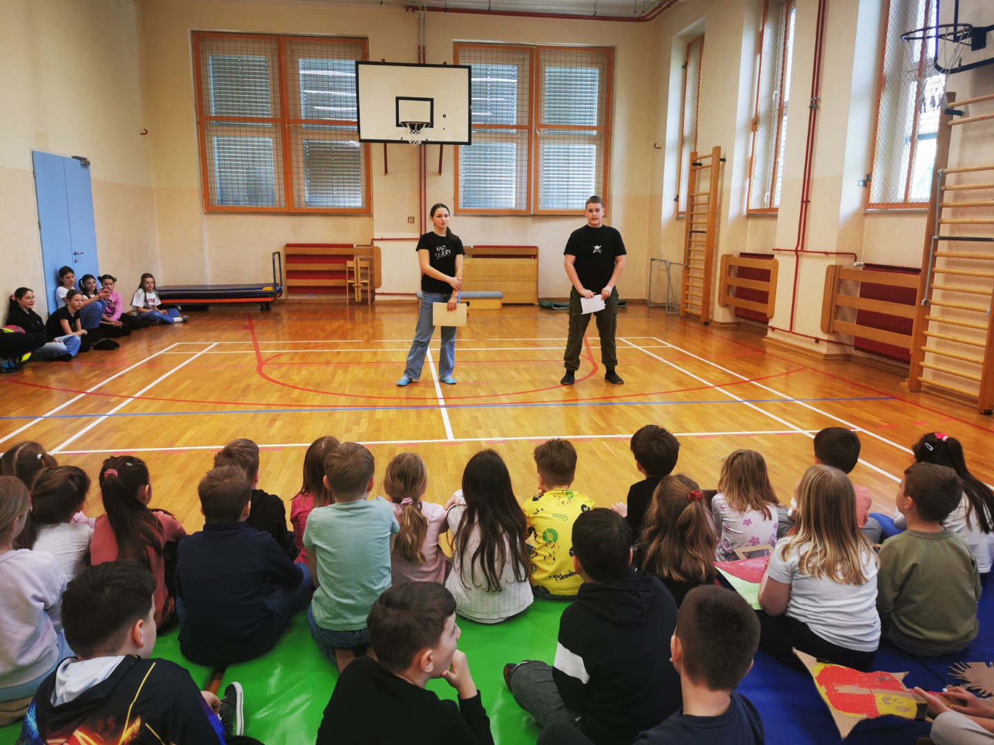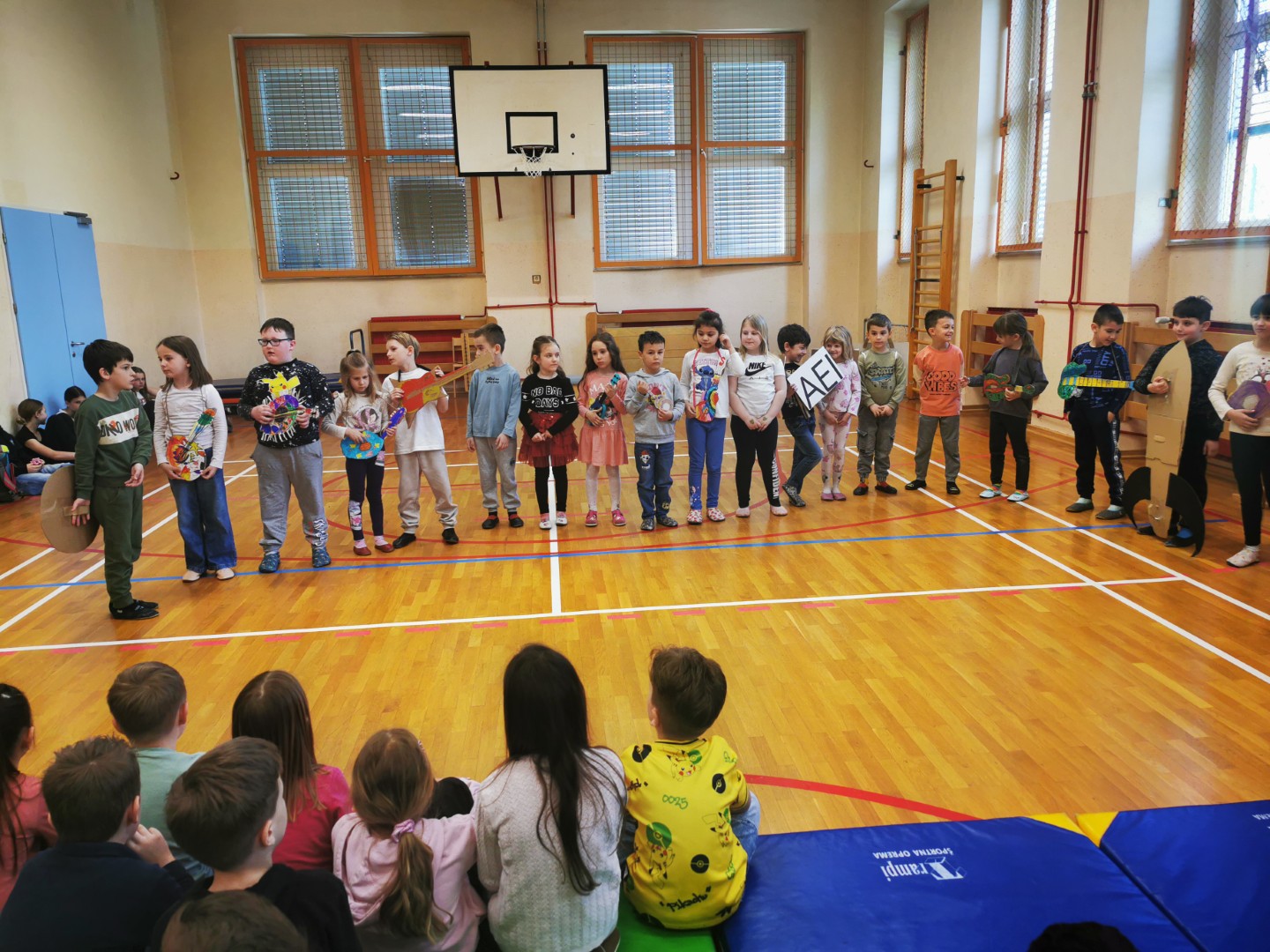 V petek, 11. 4. 2025, smo na šoli pripravili sprejem prvošolcev v skupnost učencev šole. Pozdravil in nagovoril jih je predsednik šolske skupnosti Gašper Eržen. Učenci 6. b pa so jim odigrali kratko uprizoritev na temo prvega šolskega dne. Preden smo sprejeli prvošolce, so se morali dokazati. Sodelovali so v kvizu in tako dokazali, da že dobro poznajo Mladiko.