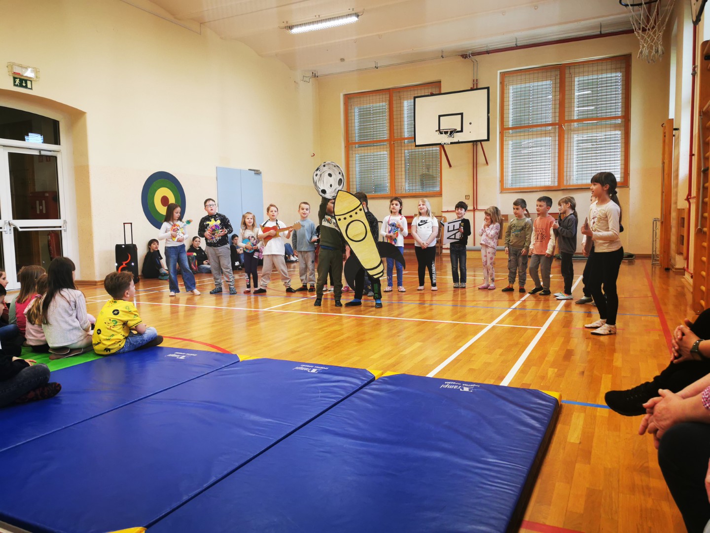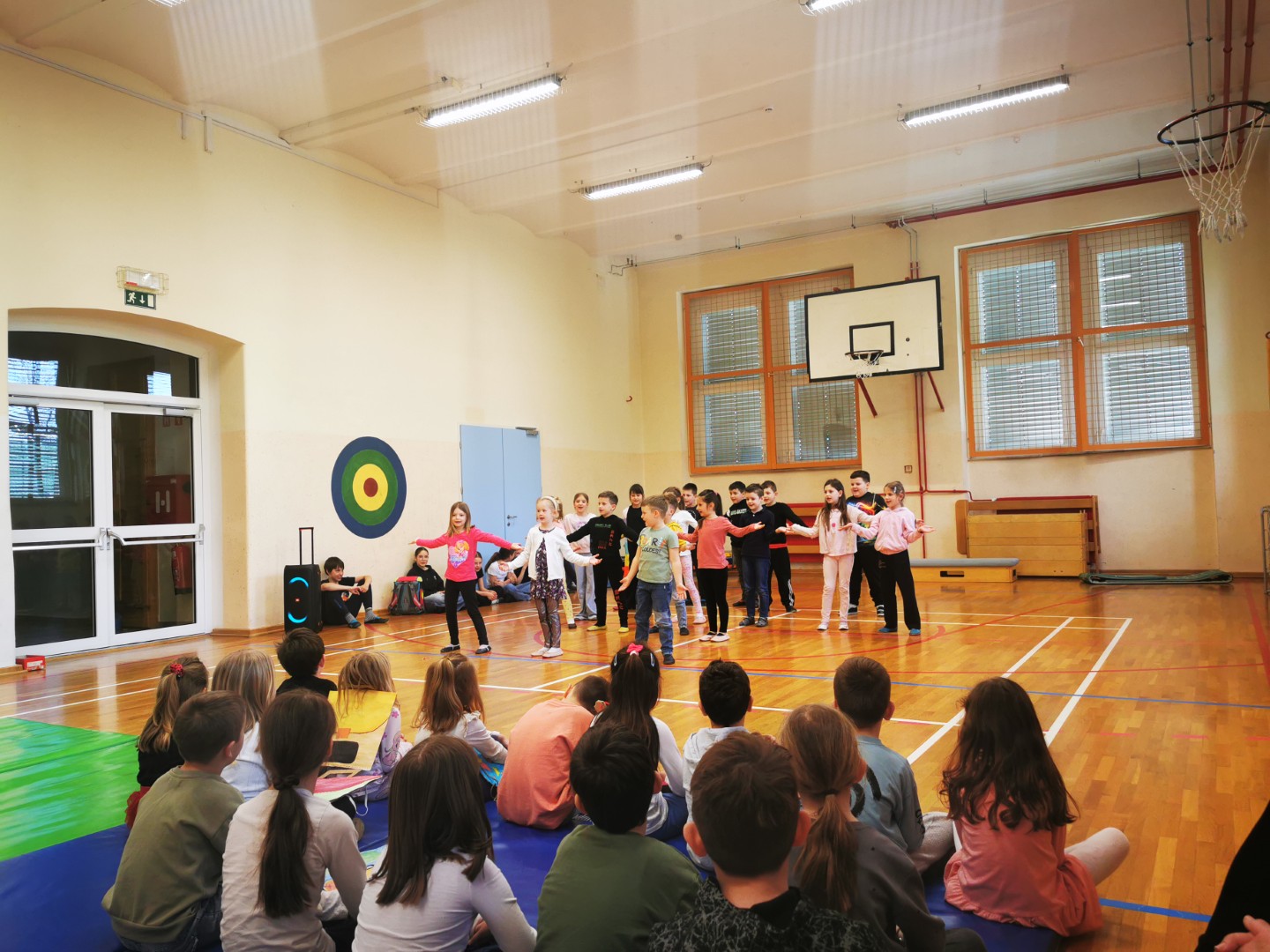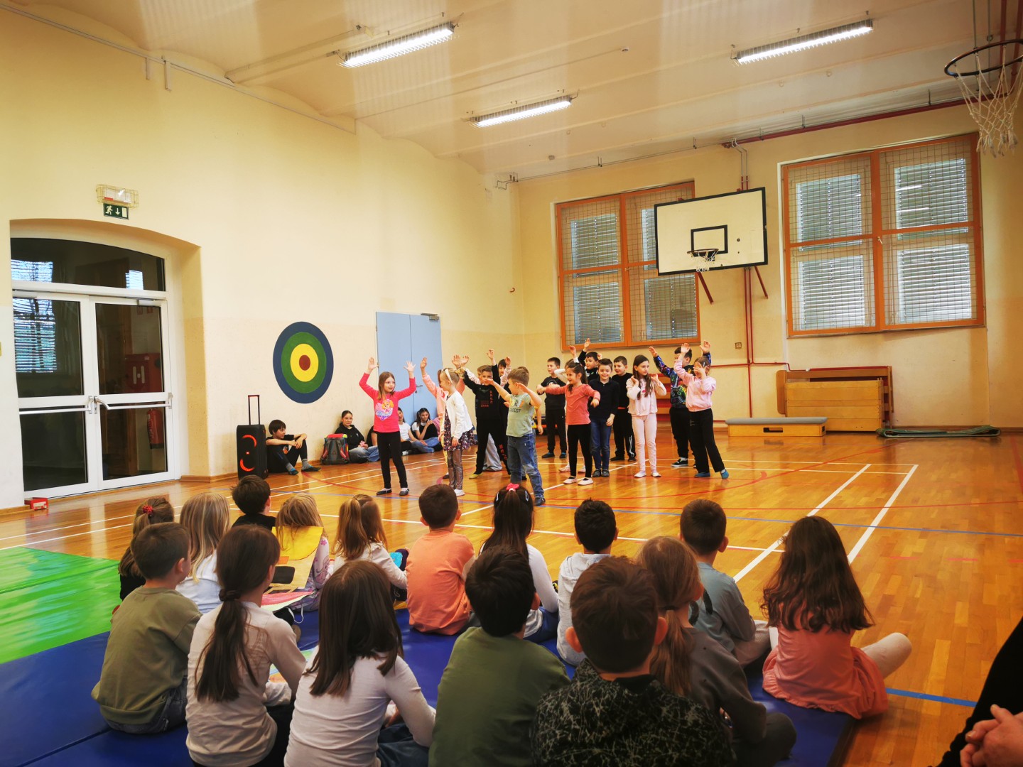 Kot se za prvošolce spodobi, so se tudi sami predstavili. Tako so učenci 1. a in 1. b zaplesali in zraven peli. Ob koncu jim je Gašper prebral slavnostno zaobljubo, s katero so obljubili, da bodo izpolnjevali šolske zaobljube vse do devetega razreda. Nagovoril in čestital jim je tudi ravnatelj šole.