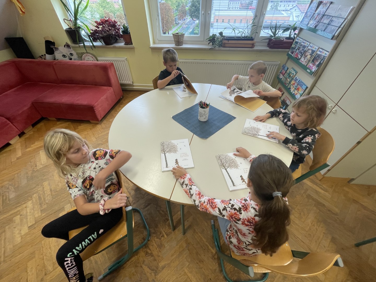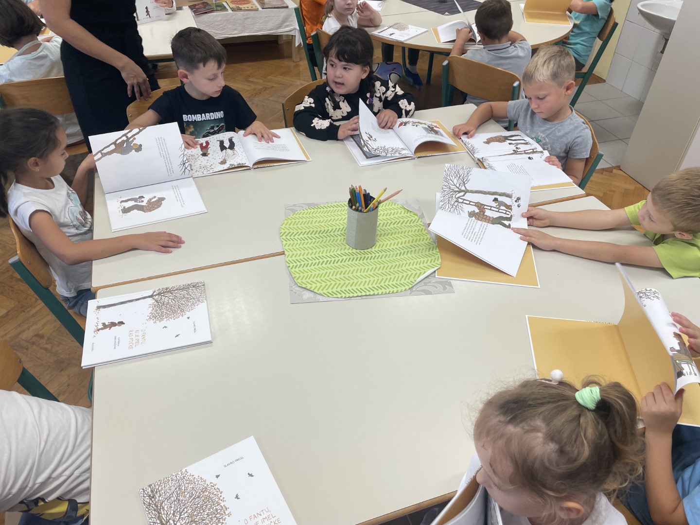 Letos so prvošolci prejeli posebno darilo: slikanico Slavka Pregla O fantu, ki je imel rad ptičke, ki jo krasijo ilustracije Anke Kočevar.