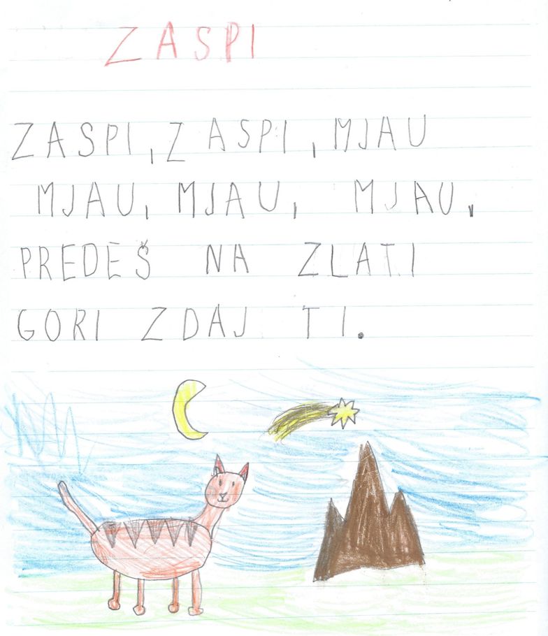Šla sta naprej in kuža je videl brlog in spet vprašal muco: »Je to tvoj dom?«