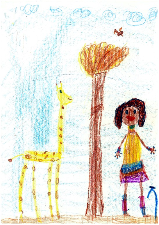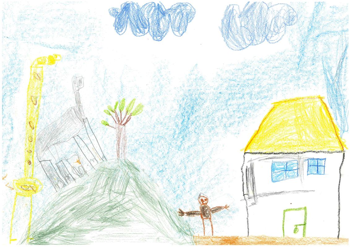Končno sta našla pot iz gozda. Muca je zagledala oranžen blok in veselo vzkliknila: » To je moj dom! Končno sva ga našla! Juhuhu, kako sem srečna.«