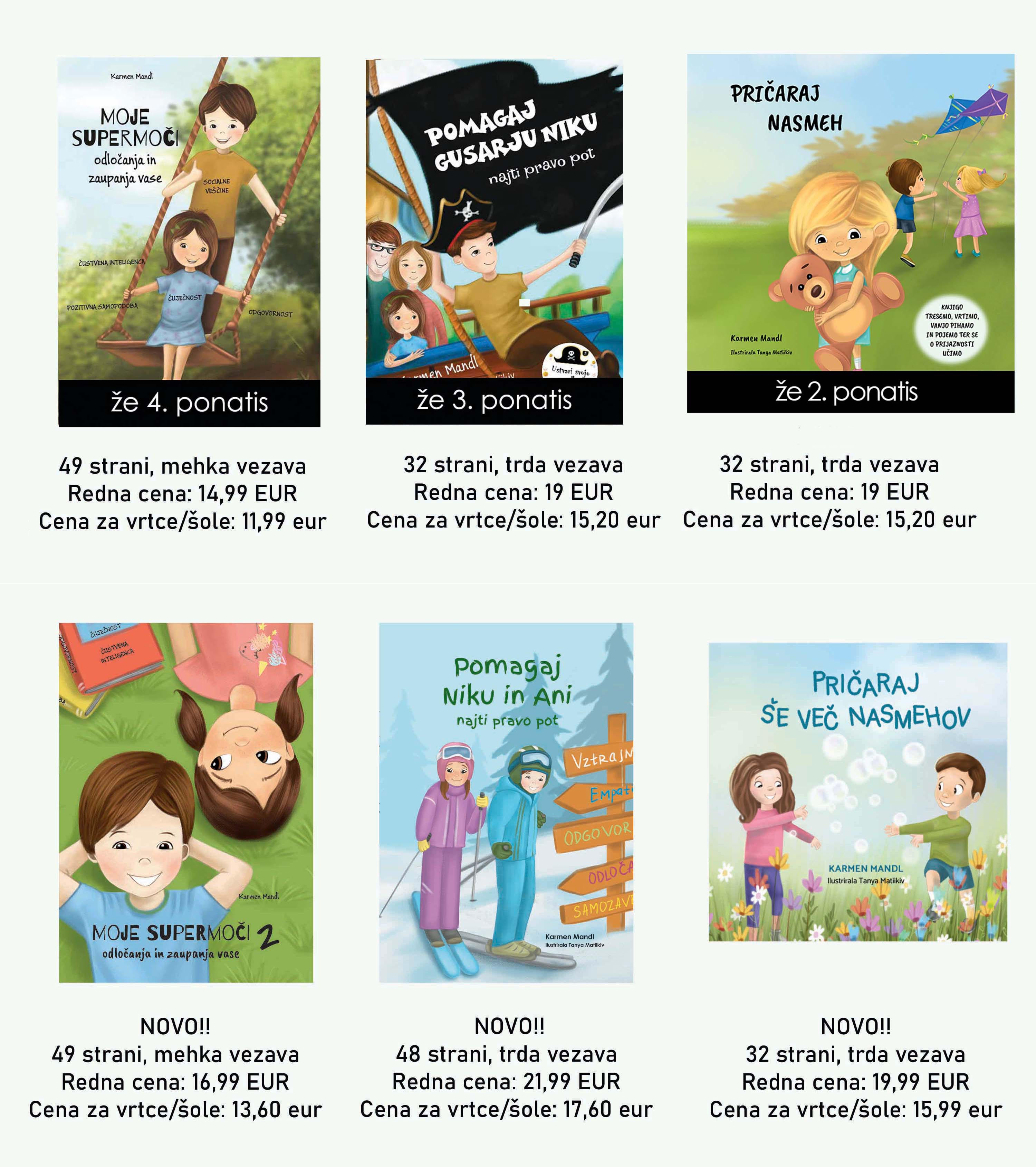 Knjige je napisala psihologinja Karmen Mandl na osnovi znanj iz psihologije, psihoterapije, mediacije in čuječnosti in več kot 15 let dela z otroki in mladostniki v vrtcu, šoli in zasebni praksi in spodbujajo čustveni in osebnostni razvoj otrok.